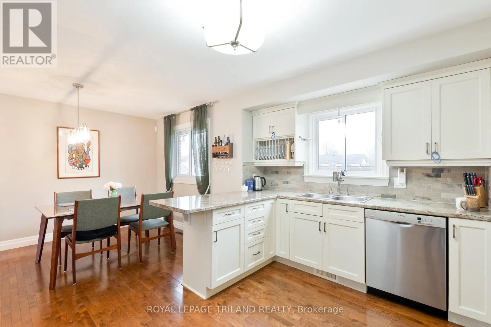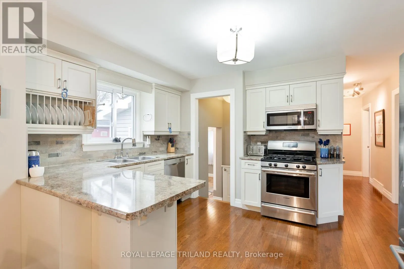 This stunning well-maintained ranch offers a perfect blend of high-end finishes & incredible infrastructure. The main level features an open-concept living & dining area with beautiful hardwood floors, leading into a stunning kitchen renovated by Casey’s Creative Kitchens with white cabinets, ample storage, and a stylish backsplash. Functional upgrades abound, including a bright solar tube in the main bath, a