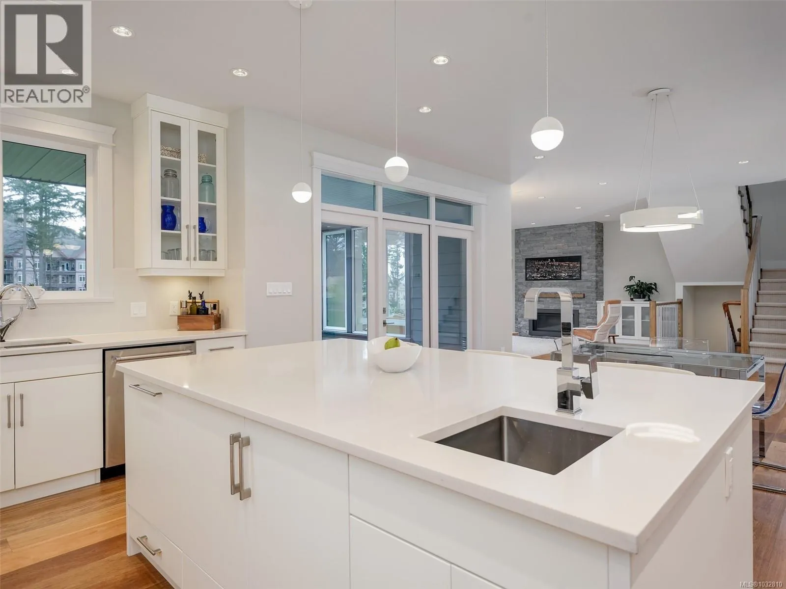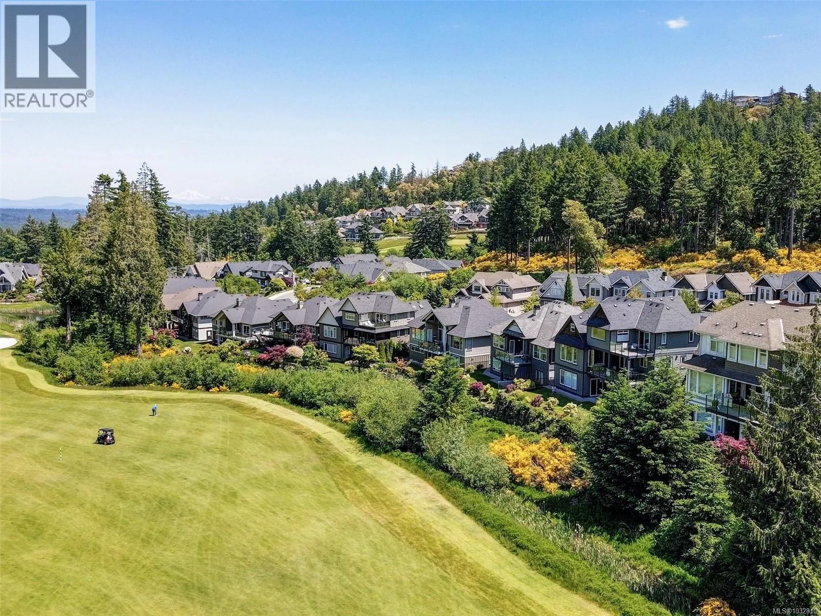 Welcome to the coveted Champions Way, where this 5 bed, 4 bath West Coast inspired executive home overlooks the 9th hole of the prestigious Jack Niklaus designed Bear Mountain G&CC. Thoughtful design and detail is evident with wide plank wood floors throughout the open plan main level and the stone fireplace in the living room incorporating the natural elements of