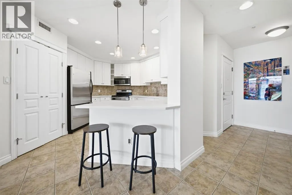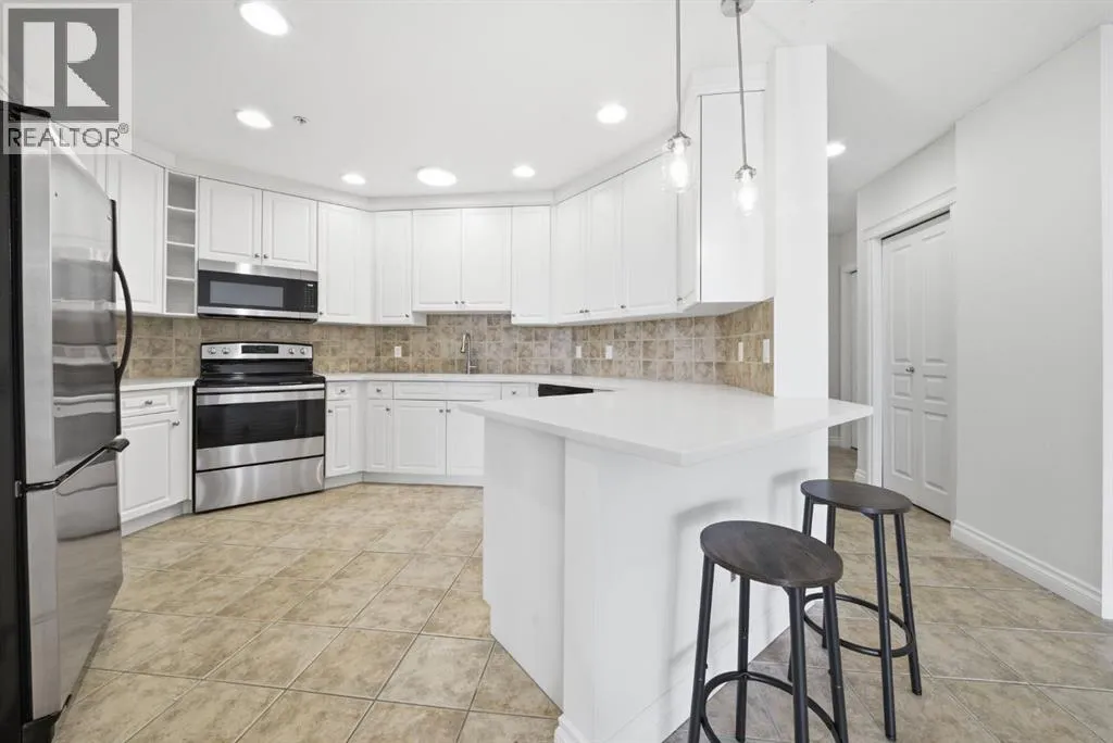 OPEN HOUSE SATURDAY APRIL 25TH 12:00pm -3:00pm | Welcome to The Renaissance, an upscale adult living residence directly connected to North Hill Centre and just steps to the LRT, offering true maintenance free convenience. This beautifully updated end unit offers 1317.78 sq ft of refined single level living with new quartz counters, fresh paint, new carpet, and updated lighting throughout.