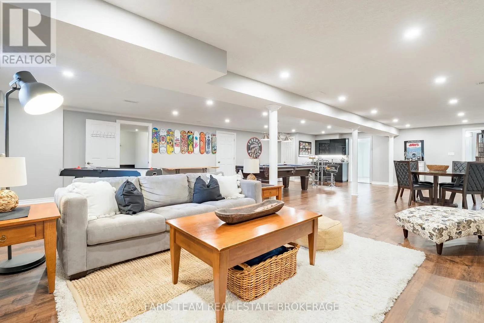 Top 5 Reasons You Will Love This Home: 1) Well-appointed modern bungalow offering a flexible 3+2 bedroom layout, featuring hardwood flooring, 9′ ceilings, and an open-concept design, with a separate oversized family room showcasing a vaulted 15′ ceiling and gas fireplace for added space and comfort, with California shutters throughout the home 2) Fully finished basement designed for entertaining and