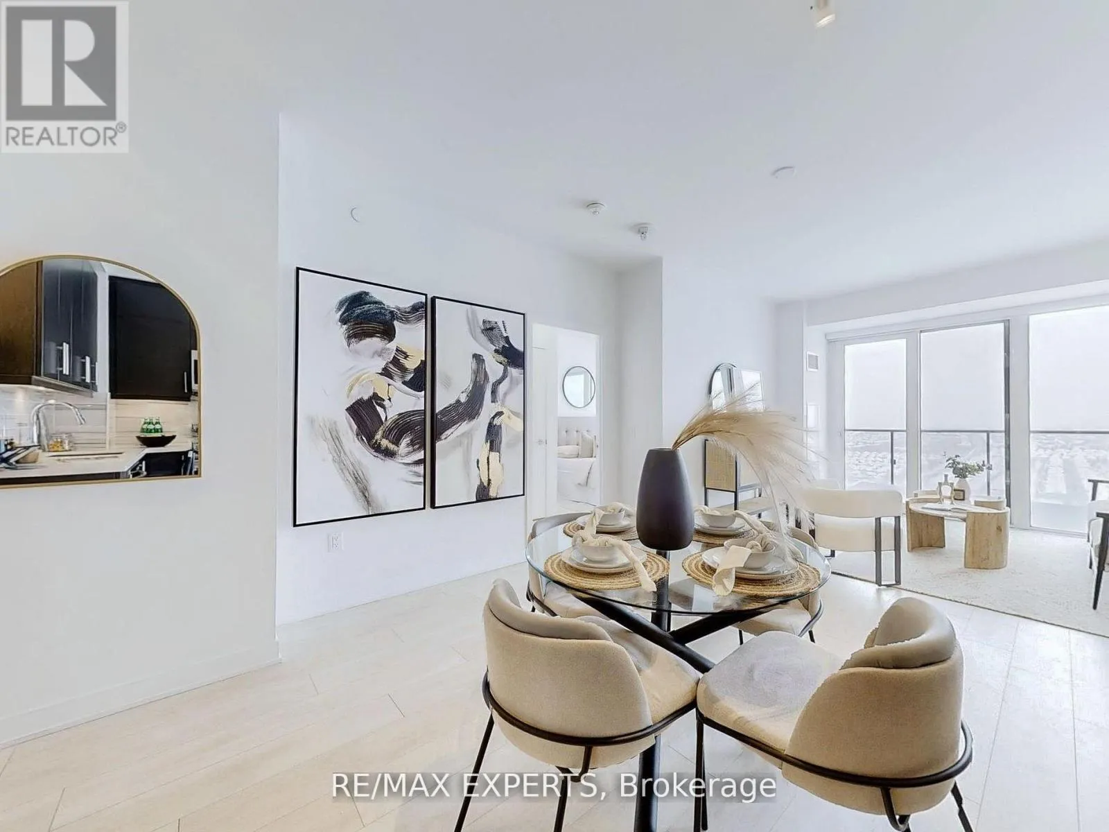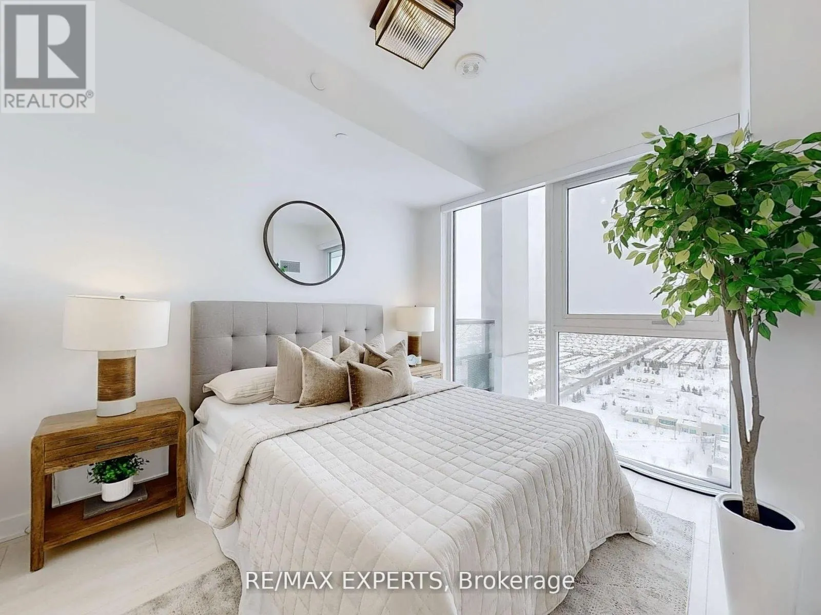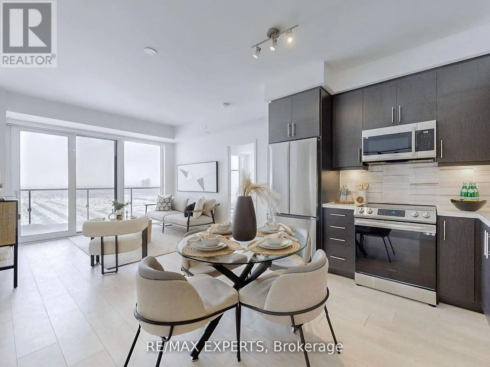 Step into modern living in this beautifully designed 2-bedroom, 2-bathroom suite which showcases a functional open-concept layout with 9-ft ceilings, wide-plank laminate flooring, and floor-to-ceiling windows that flood the space with natural light. The contemporary kitchen features quartz countertops, under-cabinet lighting, a stylish backsplash, and full-size stainless steel appliances-perfect for both everyday use and entertaining.The primary bedroom offers a walk-in