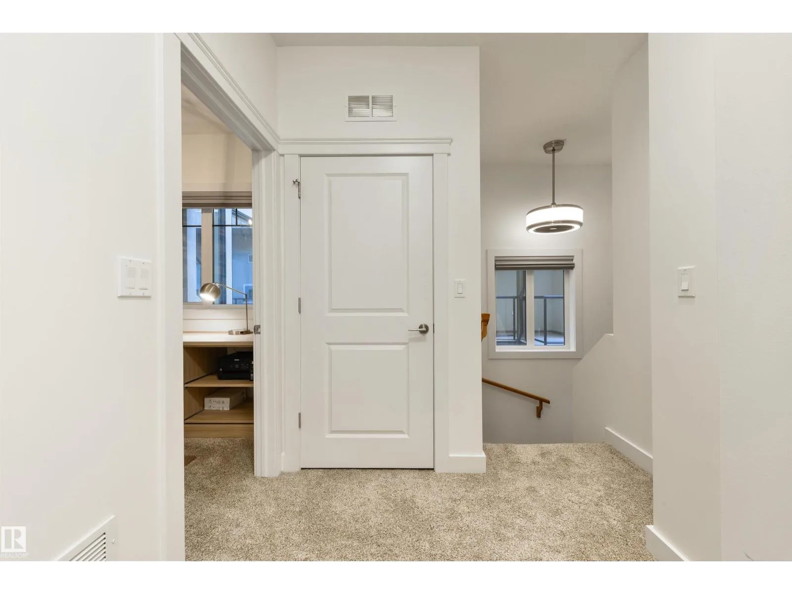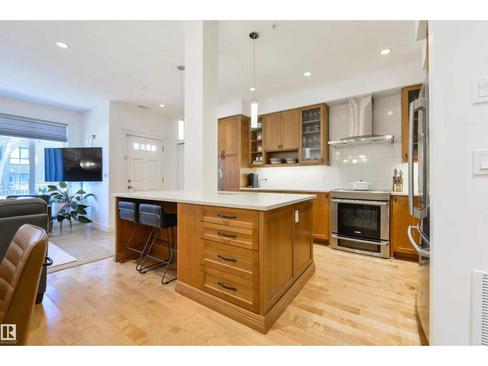 In the heart of Belgravia, The Grand Scala defines luxury townhouse living. This bright, open-concept two-storey executive home offers over 1,300 sq ft on a tree-lined street. The main floor features hardwood, Hunter Douglas blinds, quartz countertops, upgraded appliances, and exceptional kitchen storage. Its timeless design suits both modern and contemporary tastes. Upstairs offers two bedrooms plus a stylish den