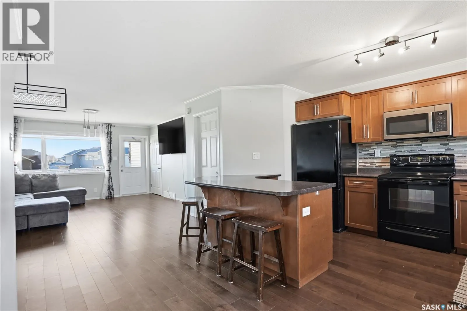 Beautiful engineered hardwood flooring throughout sets the tone for this bright and stylish 3-bedroom, 2-bath townhouse. Meticulously maintained and truly move-in ready, this home shows exceptionally well. The main floor features updated LED lighting, an open-concept design with a spacious kitchen, dining area, large living room, and convenient 2-piece bath—perfect for everyday living and entertaining. Step outside to the oversized