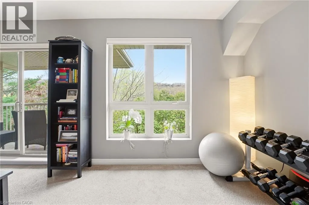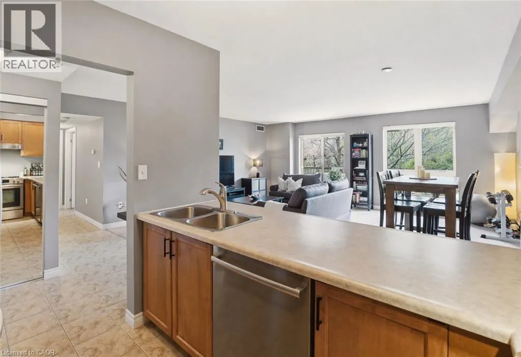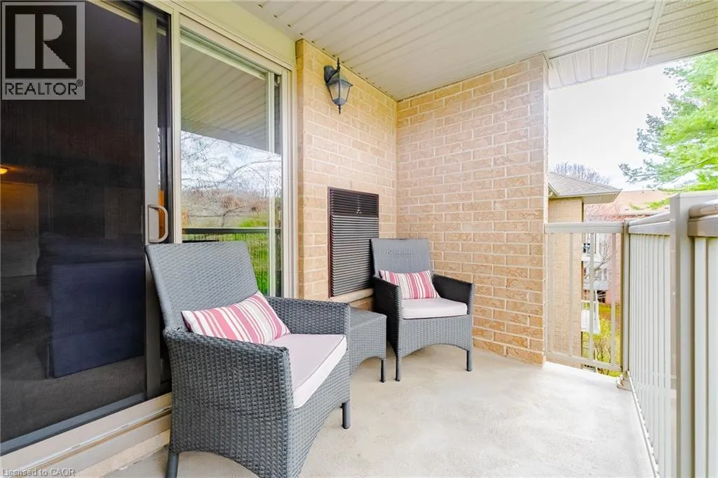 living and dining area, ideal for both everyday living and entertaining, with direct access to a private balcony overlooking a peaceful forested backdrop—an ideal setting to unwind. The primary bedroom includes a full ensuite, while the second bedroom and additional bathroom offer flexibility for guests, a home office, or family living. In-suite laundry adds everyday convenience. The unit includes an underground parking space and ample visitor parking. Condo fees include water, cable TV, and high-speed internet—adding exceptional value and ease of living. Ideally located just minutes from downtown Grimsby, parks, shopping, wineries, and with quick access to the QEW, and in close proximity to West Lincoln Memorial Hospital, this is an excellent opportunity to enjoy spacious, low-maintenance living in a highly desirable and connected community. (id:62650)