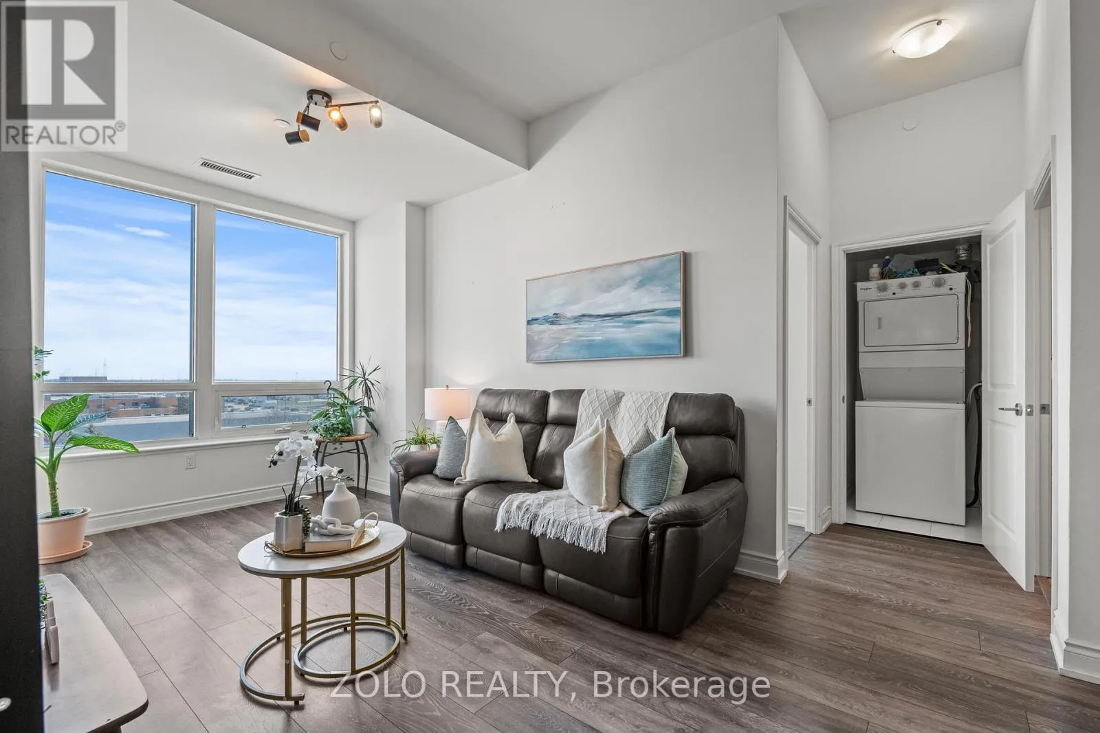 Welcome to Art on Main – one of Milton’s most sought-after boutique condo buildings by Fernbrook Homes. This beautifully appointed 2-bedroom + den suite offers 920+ sq ft of thoughtfully designed living space with soaring 10-ft ceilings and a bright open-concept layout that immediately impresses. Perched on the 6th floor with south-east exposure, enjoy views overlooking Lions Sports Park and