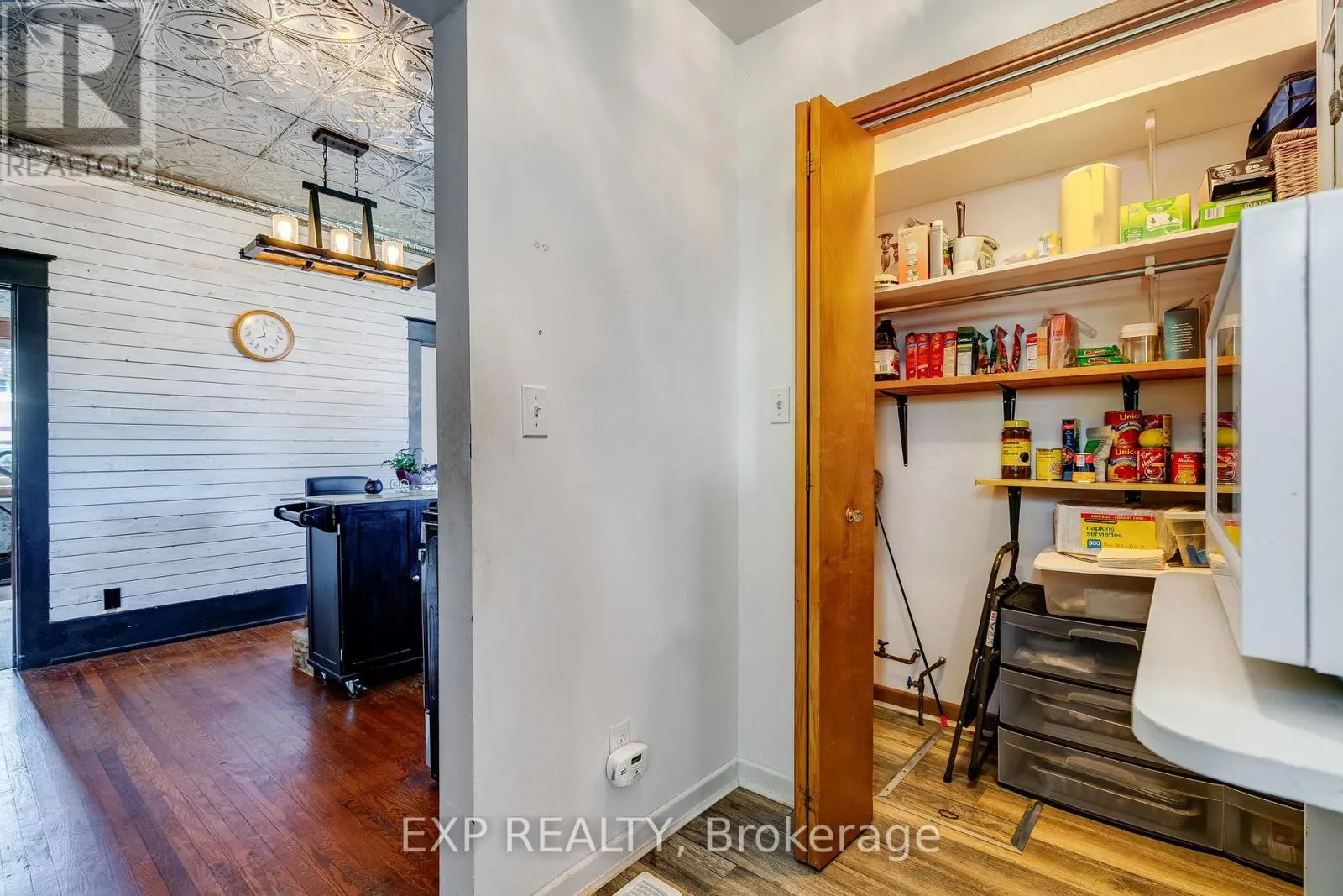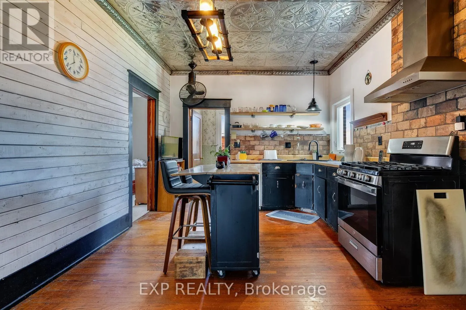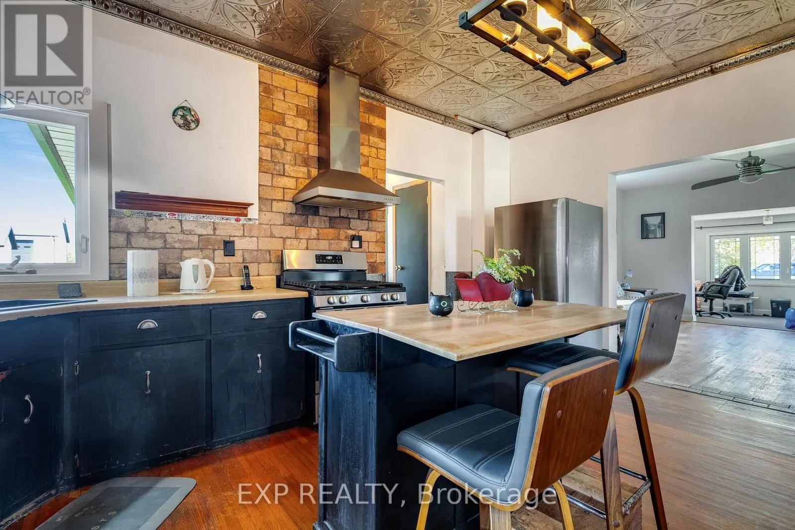 In town rural living on almost 1 acre of property and no neighbours behind! Lovely open concept Bungalow with Garage and Pool. Enjoy tall ceilings and beautifully maintained hardwood flooring and updated lighting throughout. The kitchen has gorgeous vintage tin ceilings, complementary backsplash, and island. Stainless steel appliances including gas stove and range hood. Separate pantry just off the