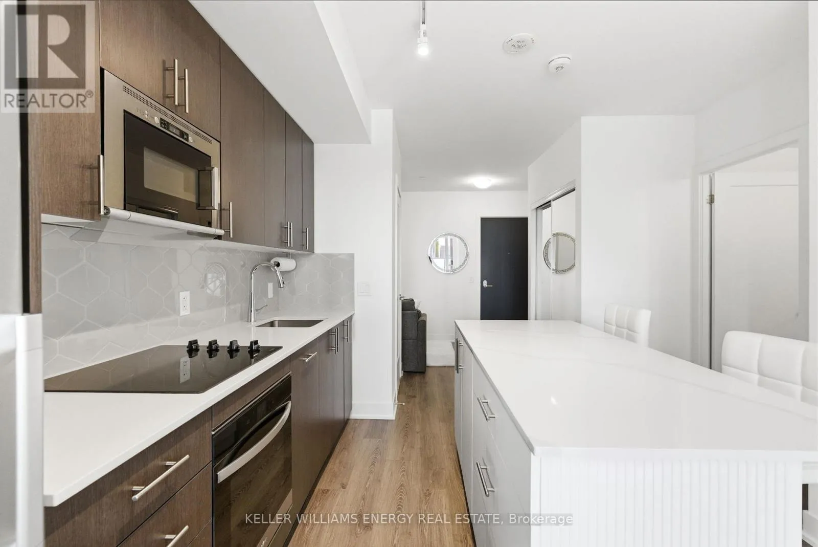 Thoughtfully designed and beautifully finished, this 1 bedroom plus den, 2 full bathroom condo offers a sophisticated living experience with a highly functional layout. The open-concept kitchen features quartz countertops, stainless steel appliances, and an eat-in island, flowing seamlessly into a generous living and dining area filled with natural light and direct access to a private balcony. The separate den