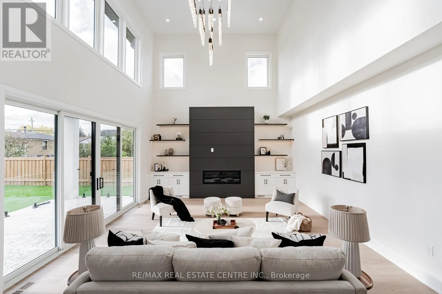 finishes throughout. The chef’s kitchen is an entertainer’s dream, featuring premium Decor built-in appliances, quartz countertops, full-height quartz backsplash, an oversized island, high-end cabinetry, and a stylish servery area with additional storage and prep space. The great room showcases a soaring 20-foot ceiling, floor-to-ceiling windows, and a striking feature fireplace that anchors the space with warmth and style. The primary retreat offers a serene escape with a spa-inspired 7-pc ensuite complete with a freestanding tub, glass shower, double vanity, and a custom walk-in closet. Each additional bedroom is generously sized and includes custom built-in closets and private 4-pc ensuites, providing ultimate comfort and privacy for the entire family. The professionally finished lower level expands your living space with two additional bedrooms, a large media room, a wet bar, and a spacious recreation area featuring oversized patio doors that open to a beautifully landscaped backyard and outdoor seating area-perfect for entertaining or relaxing in style. Set on a premium lot, this exceptional residence is surrounded by professionally designed landscaping and offers a seamless blend of indoor and outdoor living. Ideally located minutes from Oakville’s premier amenities, including the Upper Oakville Shopping Centre, Oakville Place, Metro, parks, scenic trails, and top-rated schools such as Appleby College and Abbey Park High School. Perfectly located, beautifully finished, and intelligently designed. (id:62650)