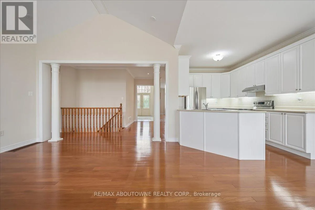 Beautifully renovated bungalow in desirable Joshua Creek, combining generous space, everyday convenience, and a bright, welcoming feel-Easy living ALL ON ONE LEVEL. The main floor features an expansive foyer with vaulted ceilings, open living/dining room overlooking the front gardens, and rich Brazilian hardwood throughout. Recently renovated gourmet kitchen with Stainless Steel appliances. Opens to the eat-in area and family room,