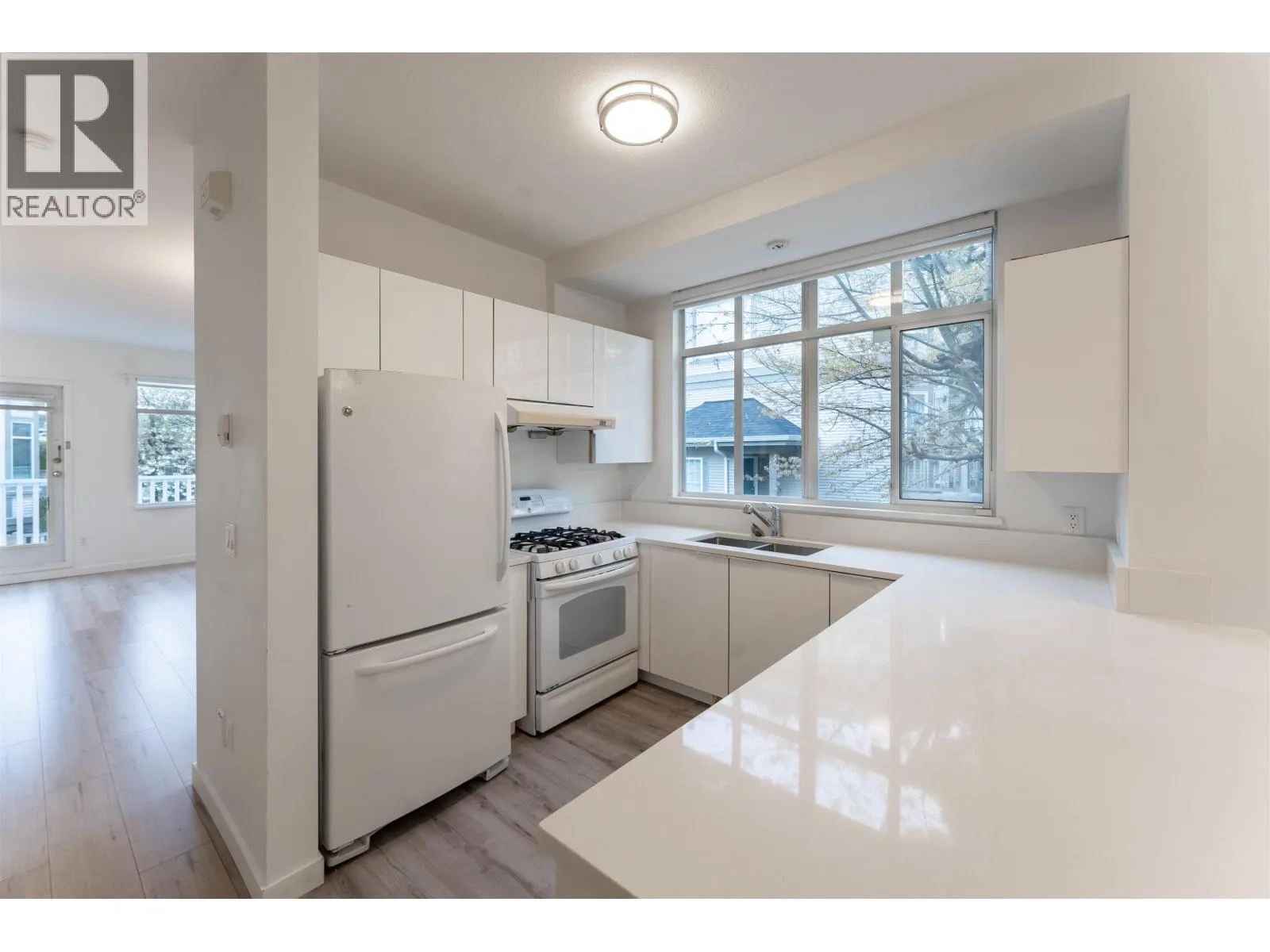 “Salisbury Lane” by Polygon in Terra Nova. This private inside-corner home offers North and South exposure, high ceilings, and a bright open-concept layout with a gas fireplace and large balcony. Updated approx. 2 years ago, the home features modern cabinetry, quartz countertops, new flooring throughout, washer & dryer, and a hot water boiler. With three visitor parking stalls directly across