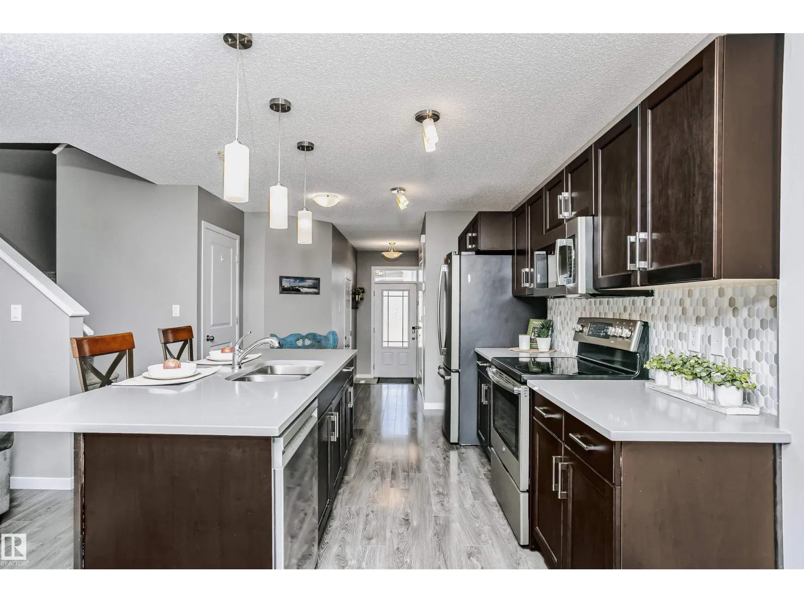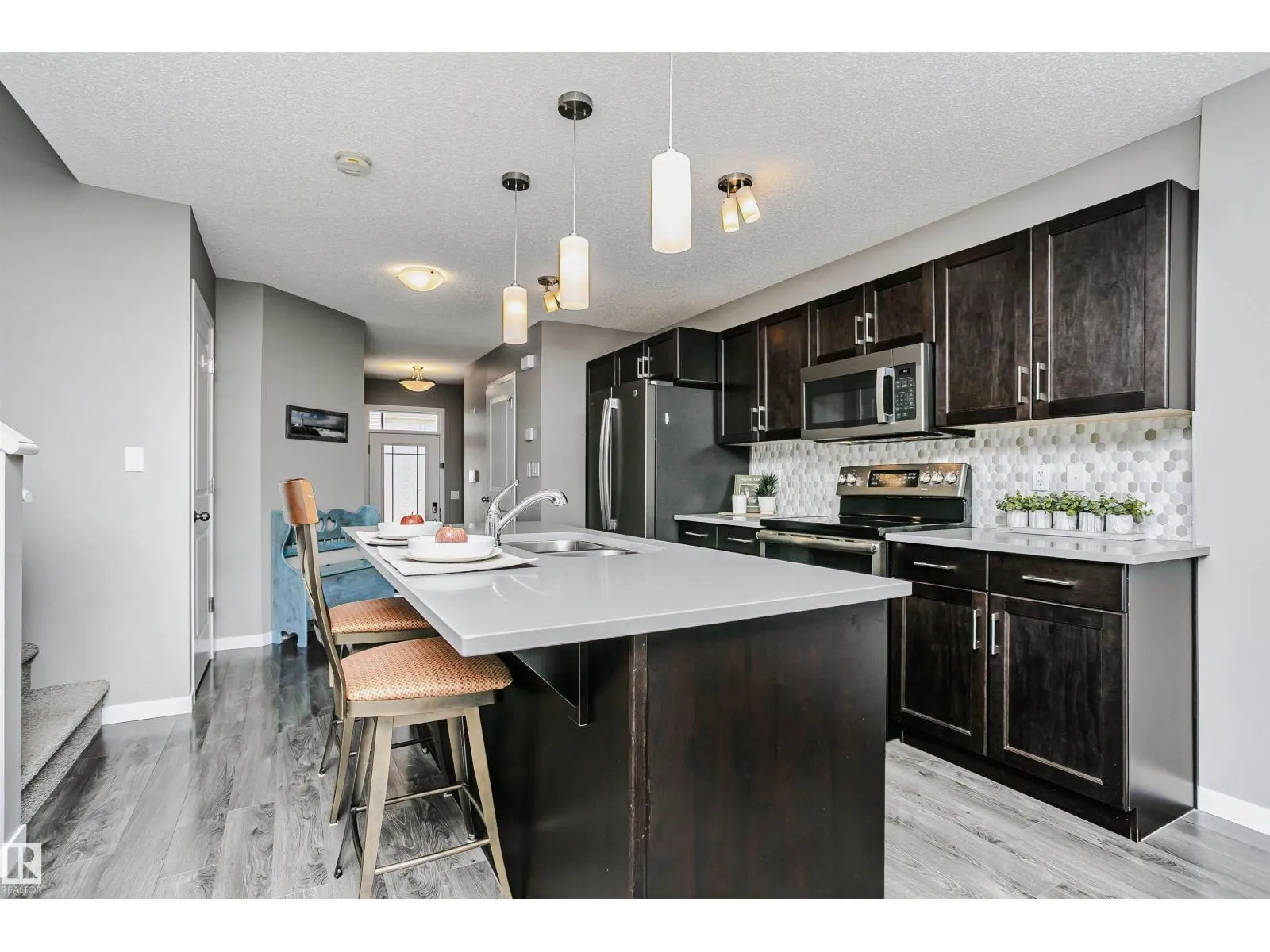Welcome to this half duplex, perfect for relaxed living! The main floor boasts a seamless flow between the living room, dining area, and kitchen, making it a fantastic space for entertaining friends and family. The galley kitchen is a true highlight, featuring plenty of cabinets, a beautiful backsplash, and bright white quartz countertops, all complemented by sleek stainless steel appliances.