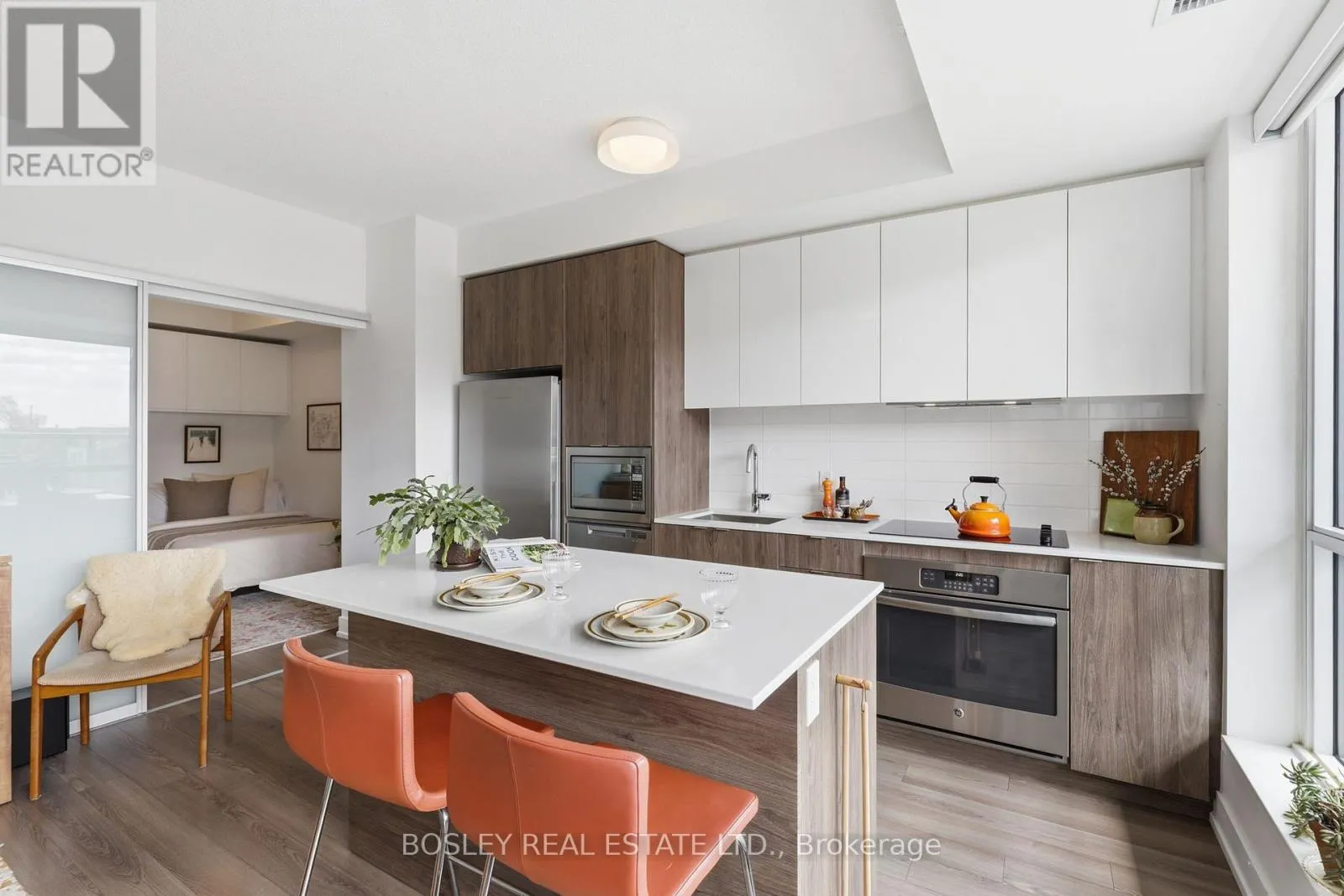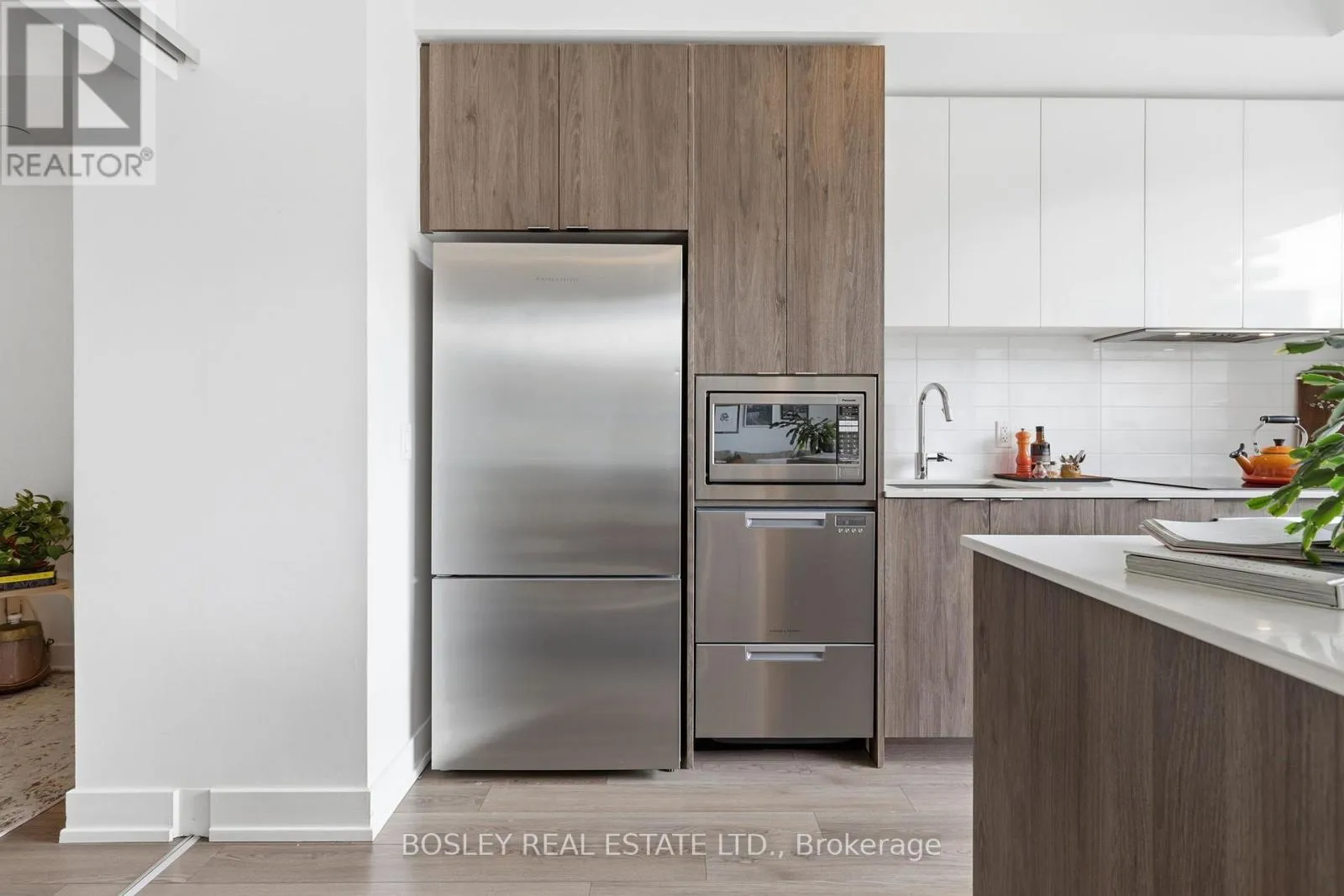 Beautiful and bright! Come see this west-facing condo with incredible light and a layout that just works. A kitchen that works. Full-seized appliances, an upgraded Fisher & Paykel fridge, double dishwasher, and a large quartz island with plenty of storage AND seating. 9 foot ceilings add to the open feel to the space. Upgrades throughout, including motorized Hunter Douglas window
