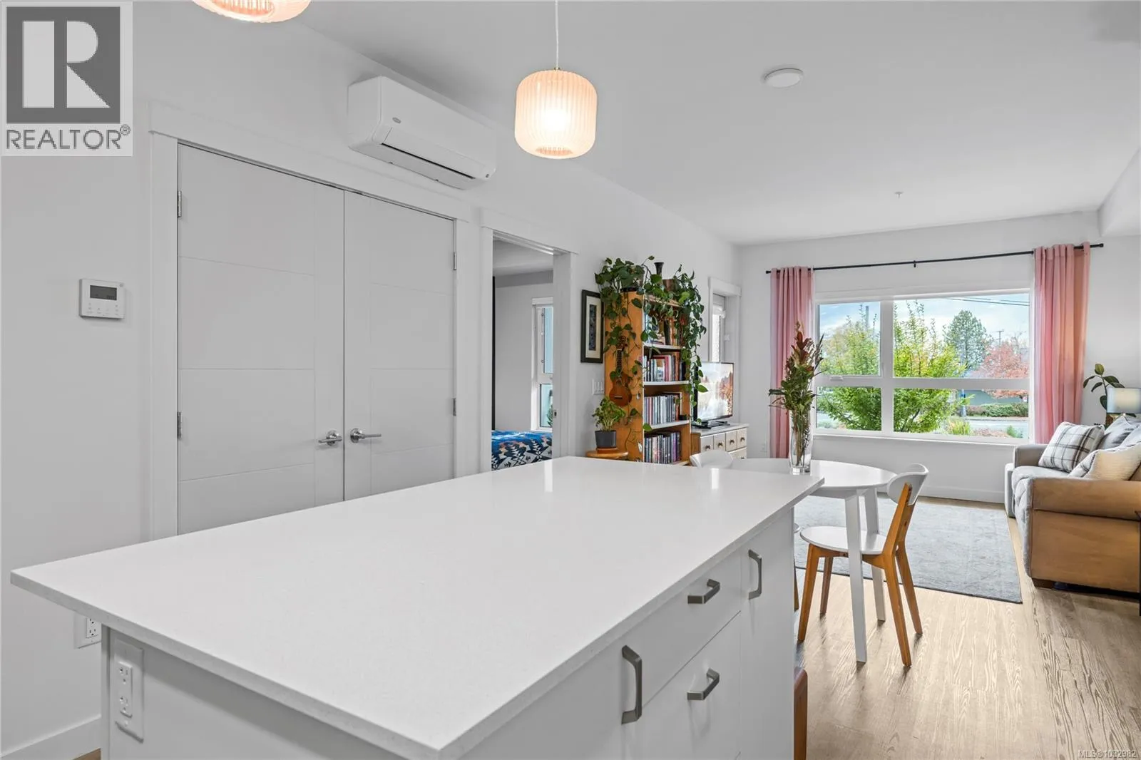 Welcome to Mosaic, Parksville’s green built centrally located condo building! This 1 bed, 1 bath, plus storage unit, boasts 9’ ceilings, quartz countertops, triple-pane windows, and energy-efficient upgrades including a heat pump, and hot water on demand. The building is designed for sustainability with solar panels, leak detection, and superior soundproofing. This unit includes 1 parking space & is