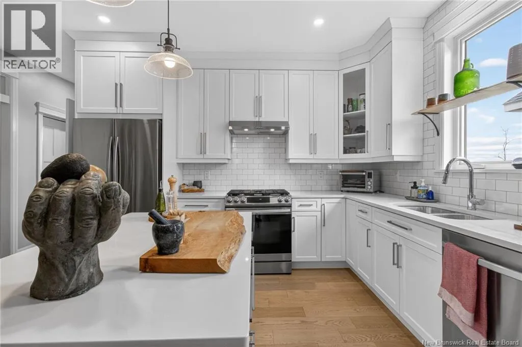 ONE LEVEL LIVING IN SOUGHT AFTER AREA. Upon entry find custom, tall wainscoting with classic panel detailing. The first bedroom or sitting room/office is immediately off to your left, and down the hallway we find open living spaces with layered lighting. The kitchen features full-height shaker cabinetry, quartz counters, and a center island with seating & built-in storage. Notice the