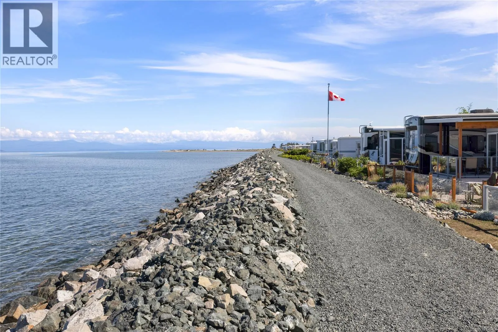 Welcome to Surfside RV Resort — a truly unique, gated oceanfront retreat in the charming seaside town of Parksville on Vancouver Island. This exceptional vacation property features a beautifully appointed 1-bedroom, 1-bath fixed trailer built in 2023, fully furnished and thoughtfully equipped with all the modern comforts you need. A large covered patio with glass railings, complete the picture. This