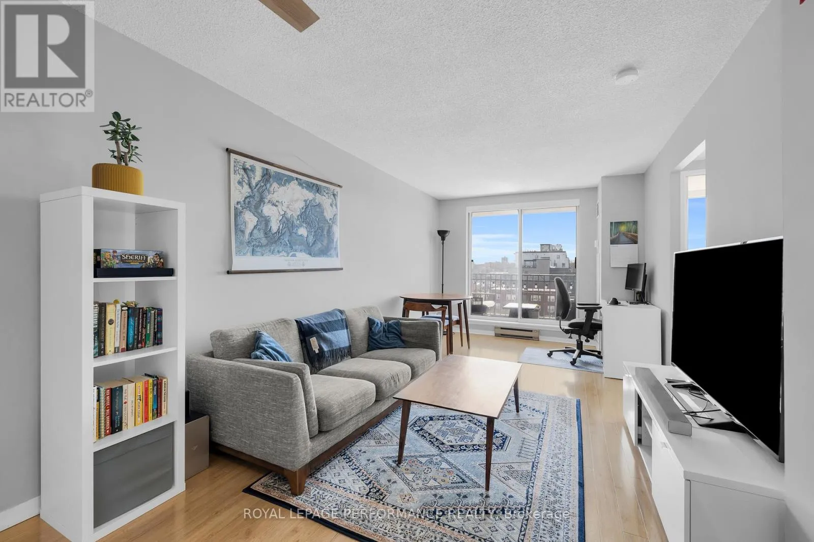 Step into Unit #611 at 45 Holland Avenue, a bright and inviting 6th-floor retreat at Holland Cross. The entrance welcomes you with a tiled foyer that transitions into an expansive, open-concept living and dining area. Flooded with natural light from large windows, this versatile main living space yields endless options for furniture arrangements and provides direct access to a private