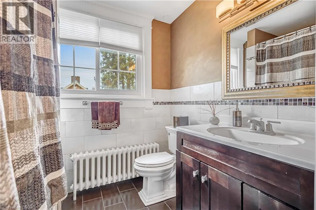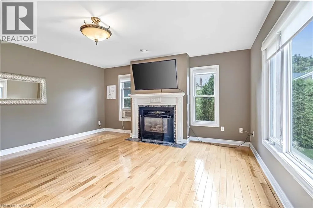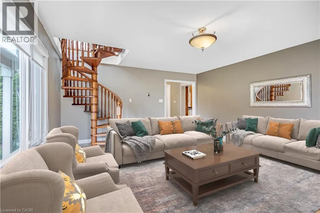 friends and family will gather. Just steps away, a 3-piece bathroom. From here, you’ll find a large family room featuring a cozy fireplace and bay window. A charming spiral staircase adds the perfect touch of character, leading you upstairs directly to the sunroom. Off the kitchen sits the formal dining room, a space that beams with original woodwork, from hardwood floors, to ceiling beams, to built-in cabinetry. A large window allows natural light to pour in, creating a warm, inviting atmosphere perfect for hosting family dinners or holiday celebrations. From there, step into the foyer and a second living room, complete with another fireplace and its own staircase leading to the second floor, blending function with old-world charm. The second level offers three generous bedrooms. The primary suite includes a walk-in closet and private powder room. The sunroom overlooks the backyard, with double patio doors opening to a rare rooftop patio. A full 4-piece bathroom completes this level with ease and style. The finished attic with its own bathroom is a versatile bonus space. The basement is fully finished, offering endless possibilities whether you need a rec room, gym, or extra storage. Outside, a 12-foot hedge encloses the backyard, offering unmatched privacy. Relax or entertain on the patio, enjoy the convenience of a double car garage, and take advantage of a double-wide cement driveway with parking for 4+ vehicles. From the wood accents to the unique layout and cozy fireplaces, it’s the kind of home that welcomes you the moment you walk in. Spacious, warm, and full of heart, this is where new memories are ready to be made. (id:62650)