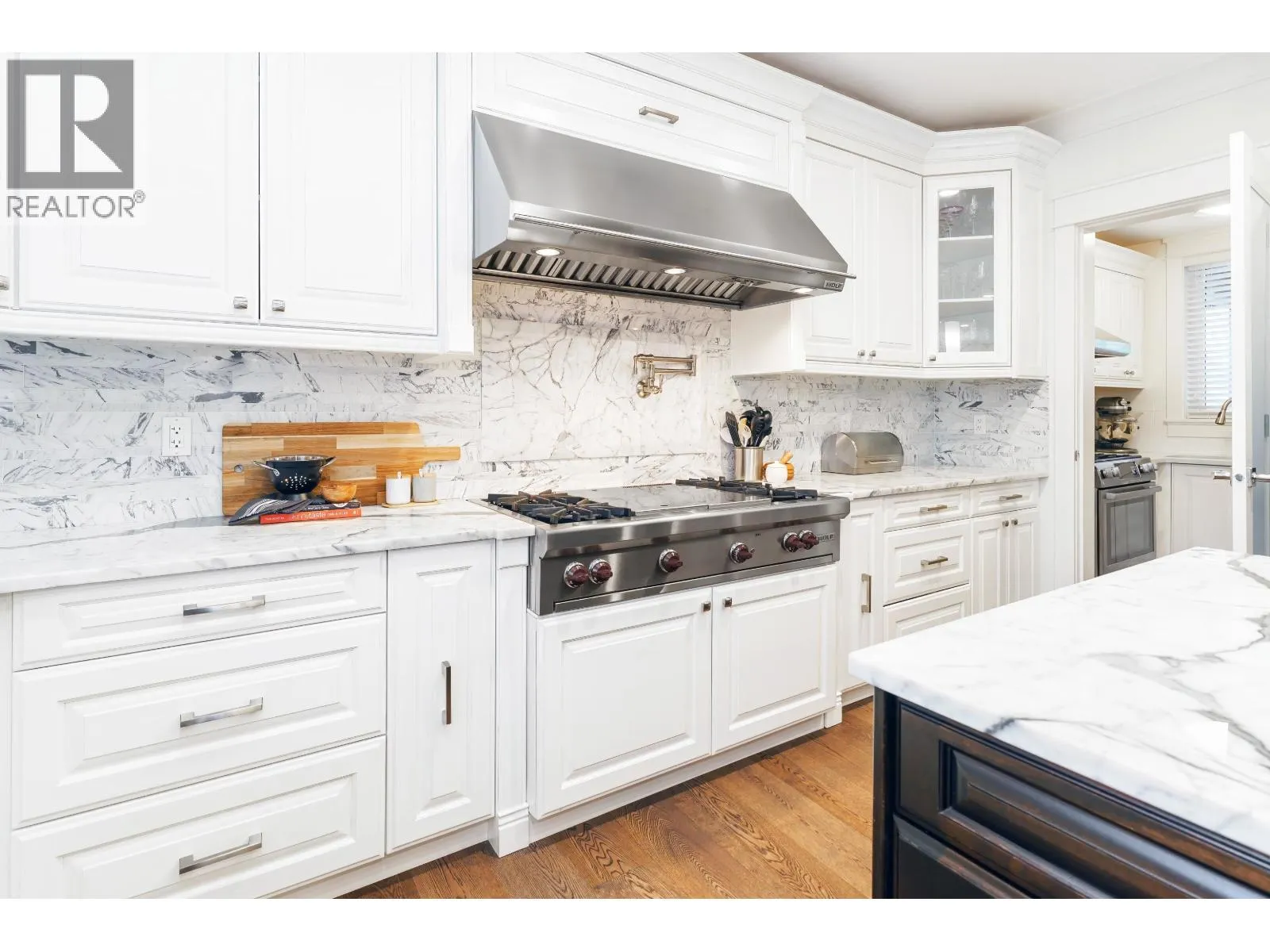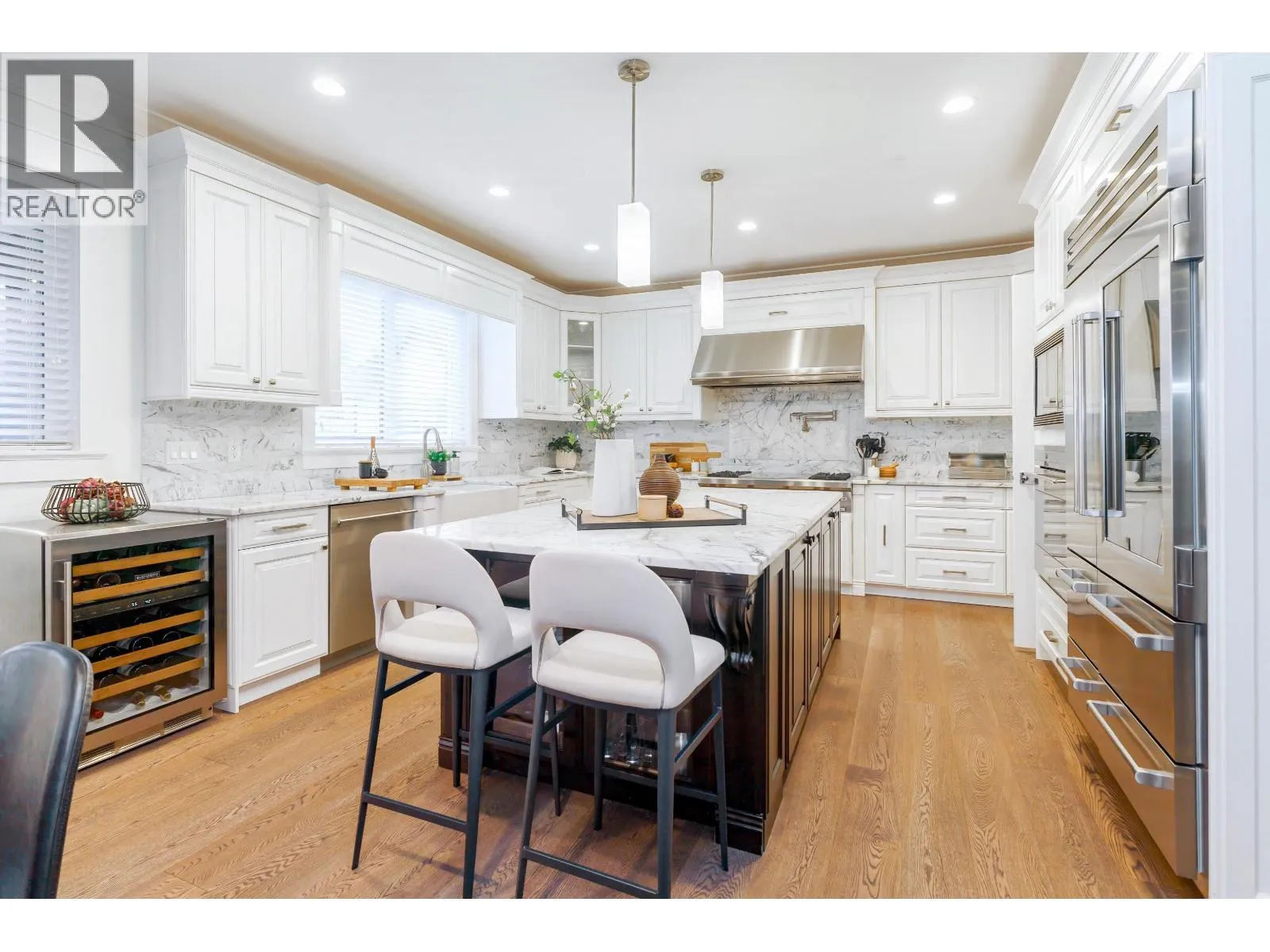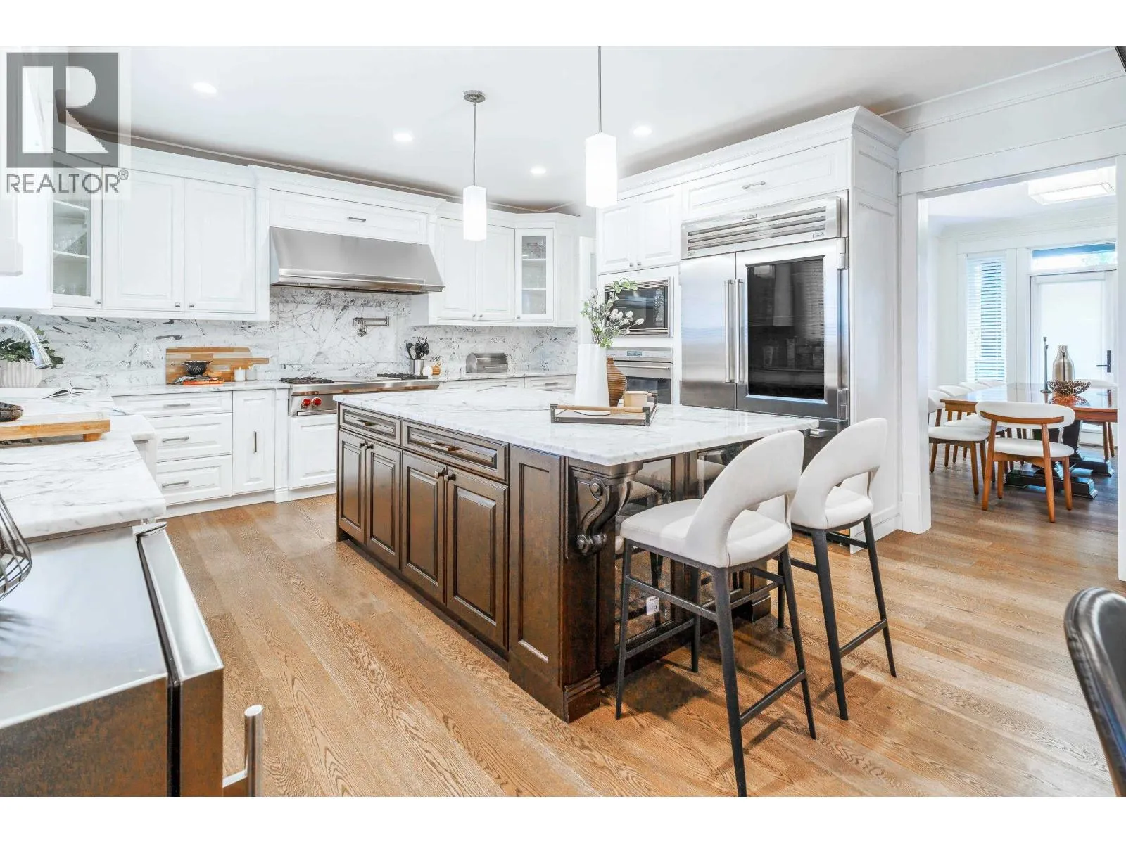 6,110 square ft custom-built luxury home loaded with premium features on a 10,975 square ft lot! Grand living and dining areas impress with soaring ceilings and a striking two-way stone fireplace. Entertain effortlessly in the massive gourmet chef´s kitchen with Wolf & Sub-Zero appliances, a full spice kitchen, and seamless access to a beautifully appointed outdoor space with hot