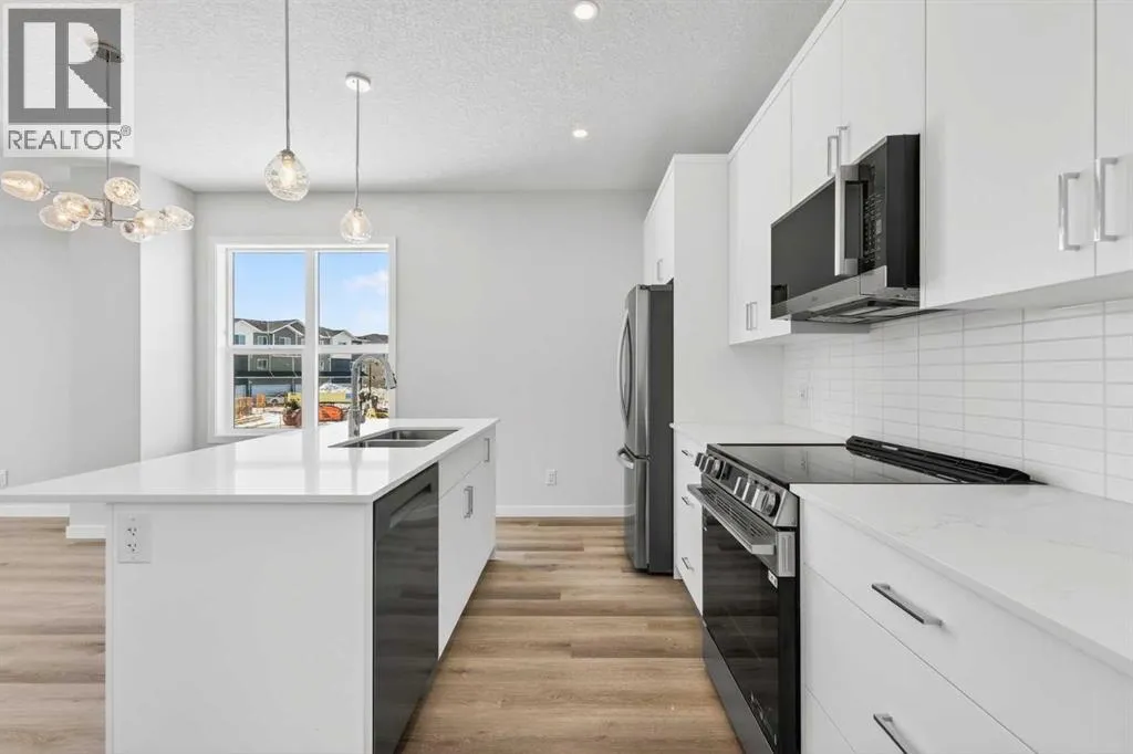 OPEN HOUSE on Saturday AND Sunday from 12-5pm. Please go to the Show Home located at 613-132 Red Embers Link NE for access. StreetSide proudly presents this exceptionally popular End-unit townhome, where expansive living areas meet modern comforts and sophisticated finishes. The thoughtfully designed floorplan features three spacious upper-level bedrooms and two and a half well appointed bathrooms, complemented by