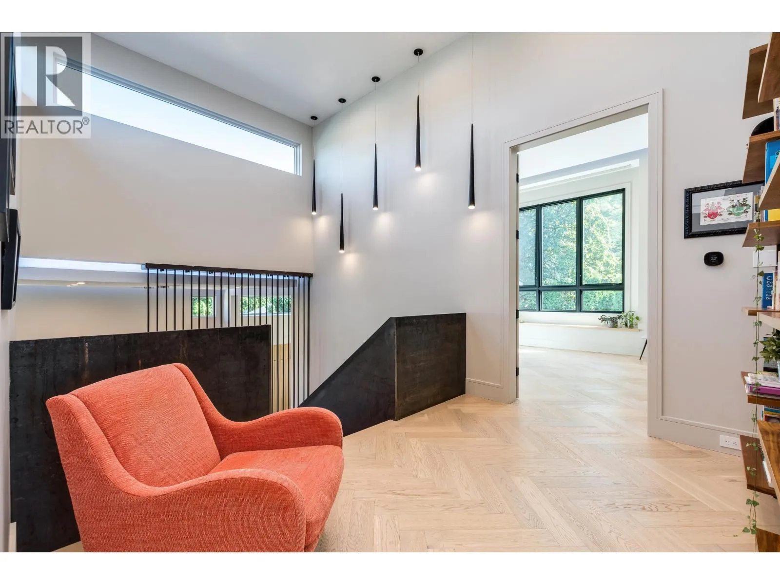 10560 Hogarth sells itself if you lean into the architectural moments and lifestyle: A striking blend of modern design and effortless livability, this custom home is defined by its statement steel staircase – an architectural centerpiece that anchors the space with bold, sculptural presence. Soaring ceilings and clean lines create an airy, gallery-like feel, while warm wood finishes keep it