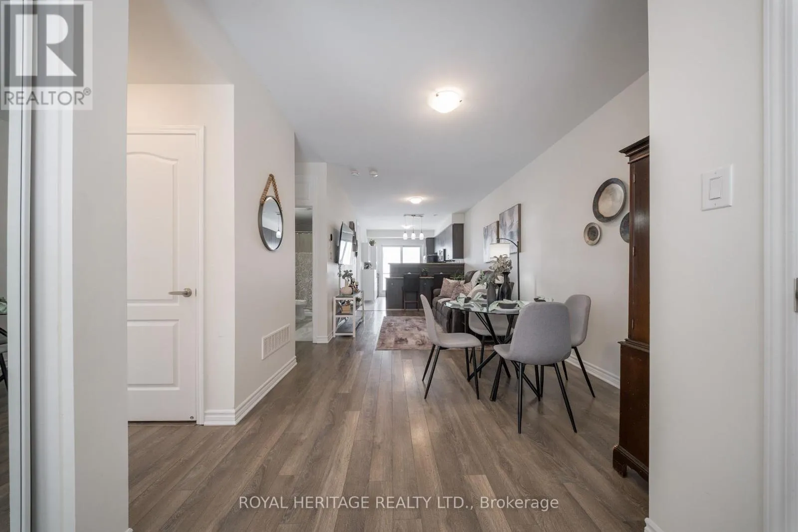 Welcome to this Bright / Spacious End-Unit Townhouse beautifully maintained offering a large kitchen with extra cabinetry and breakfast bar, walk-out to private 11′ x 10′.This open concept floor plan with 9 foot ceilings is ideal for entertaining, with an abundance of natural light throughout. The main floor features a spacious primary bedroom with a 3-piece ensuite, a second bedroom,
