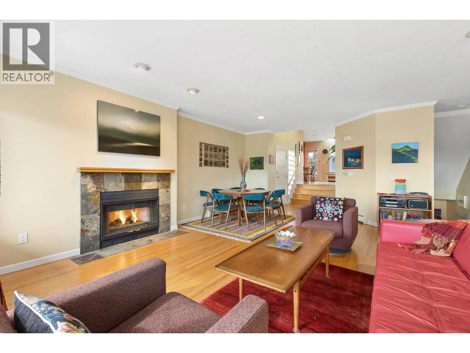 Enjoy the Ocean outlook & westside views from this Lovely Half-Duplex just steps to the Seawall & shops of Dundarave Village. This elegant condo has a spacious open floor plan, vaulted ceilings, hardwood floors and gourmet kitchen boasting SS appliance package & Viking range. Upstairs features exclusive Primary suite with 2 fireplaces and separate den. The downstairs offers a large