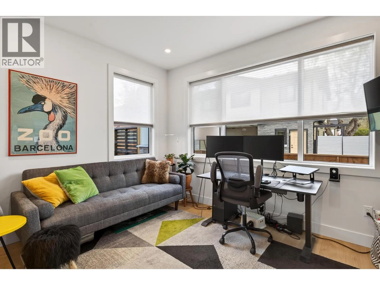Rare 1,800 sq ft, 4-bed, 3-bath townhome in Downtown Kelowna — and this one comes completely turnkey! The sellers have added post-possession upgrades so you skip the landscaping, fencing, blinds, paint, and finish work that most new builds leave for year one. Upgrades include a custom fenced courtyard with gate and low-maintenance rock-scaping; automated blinds throughout; a designer paint package