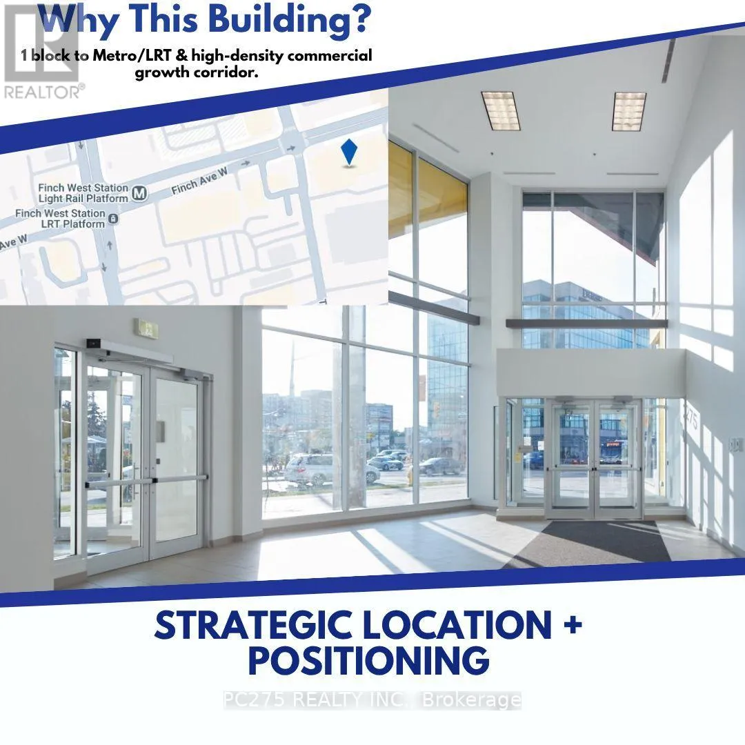 An exceptional opportunity to acquire a larger-format commercial condo unit within the active mezzanine level at 1275 Finch Ave W., strategically Located directly across from the elevator bank for maximum visibility and accessibility. Unit 201 offers a unique advantage through its high-visibility placement within a busy internal corridor, benefiting from consistent foot traffic generated by surrounding medical, wellness, and service-oriented