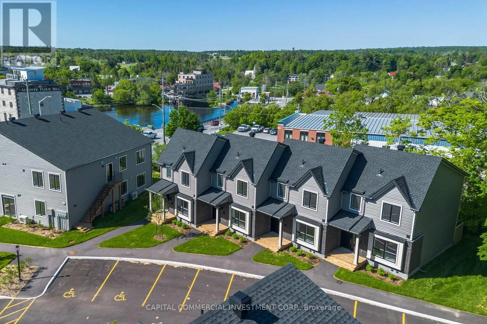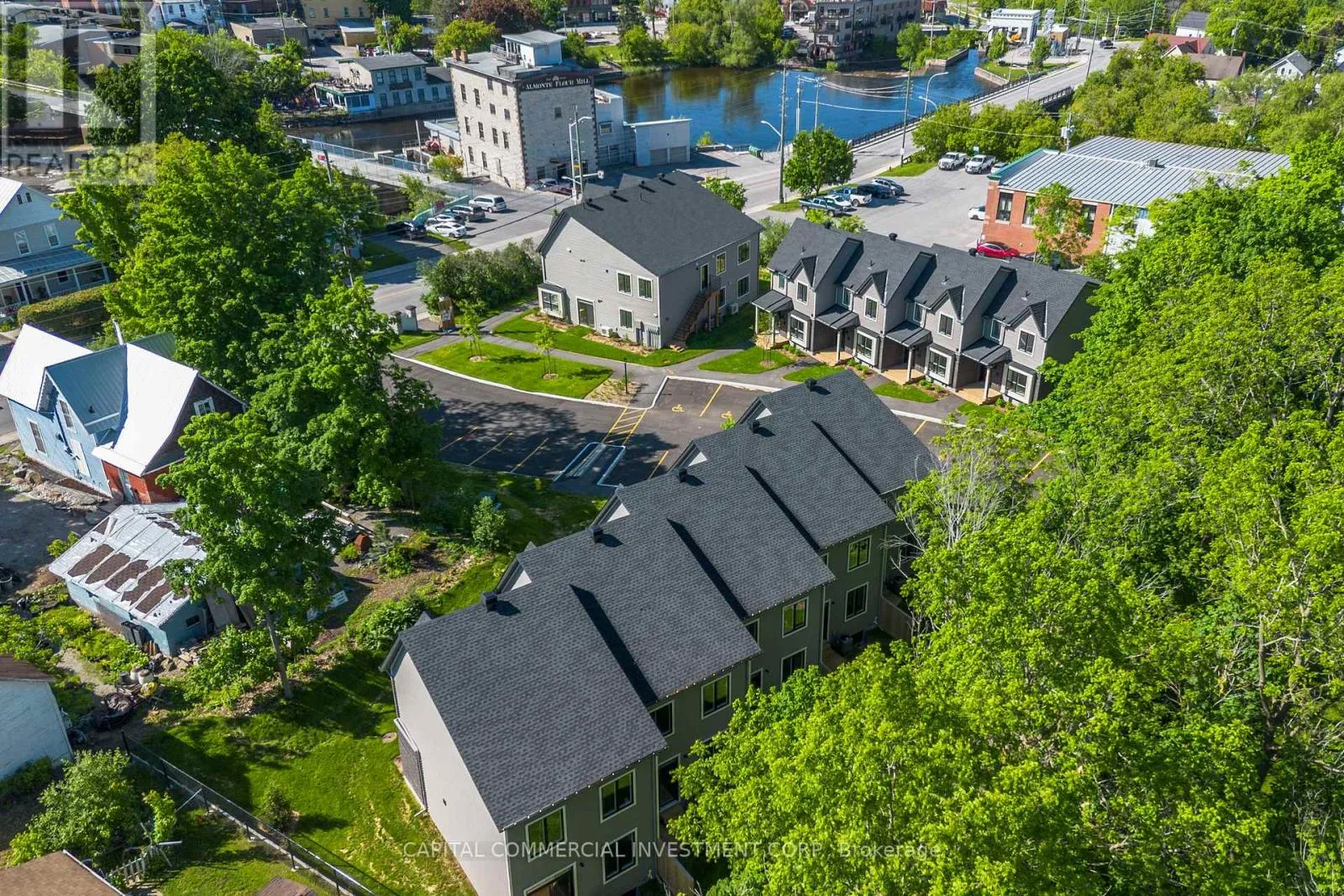 Modern luxury meets unbeatable location with this prime investment opportunity in vibrant downtown Mississippi Mills / Almonte! This stunning 2024-built property boasts 13 tastefully designed units offering modern finishes, high ceilings, and beautiful views overlooking the Mississippi River and the charming heritage architecture of downtown Almonte. 9 townhomes each feature 3 bedrooms, 2 bathrooms (including double sinks in the master