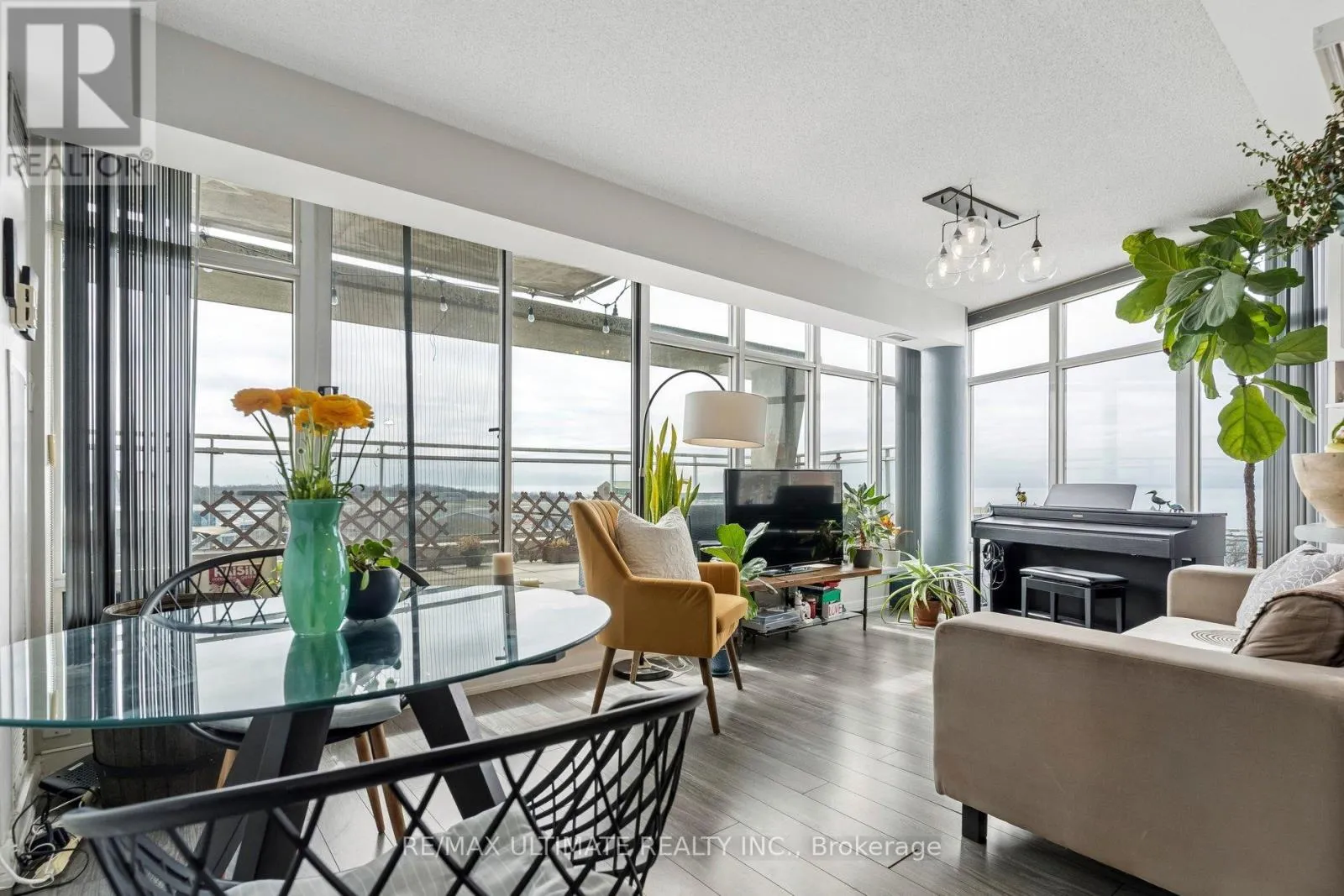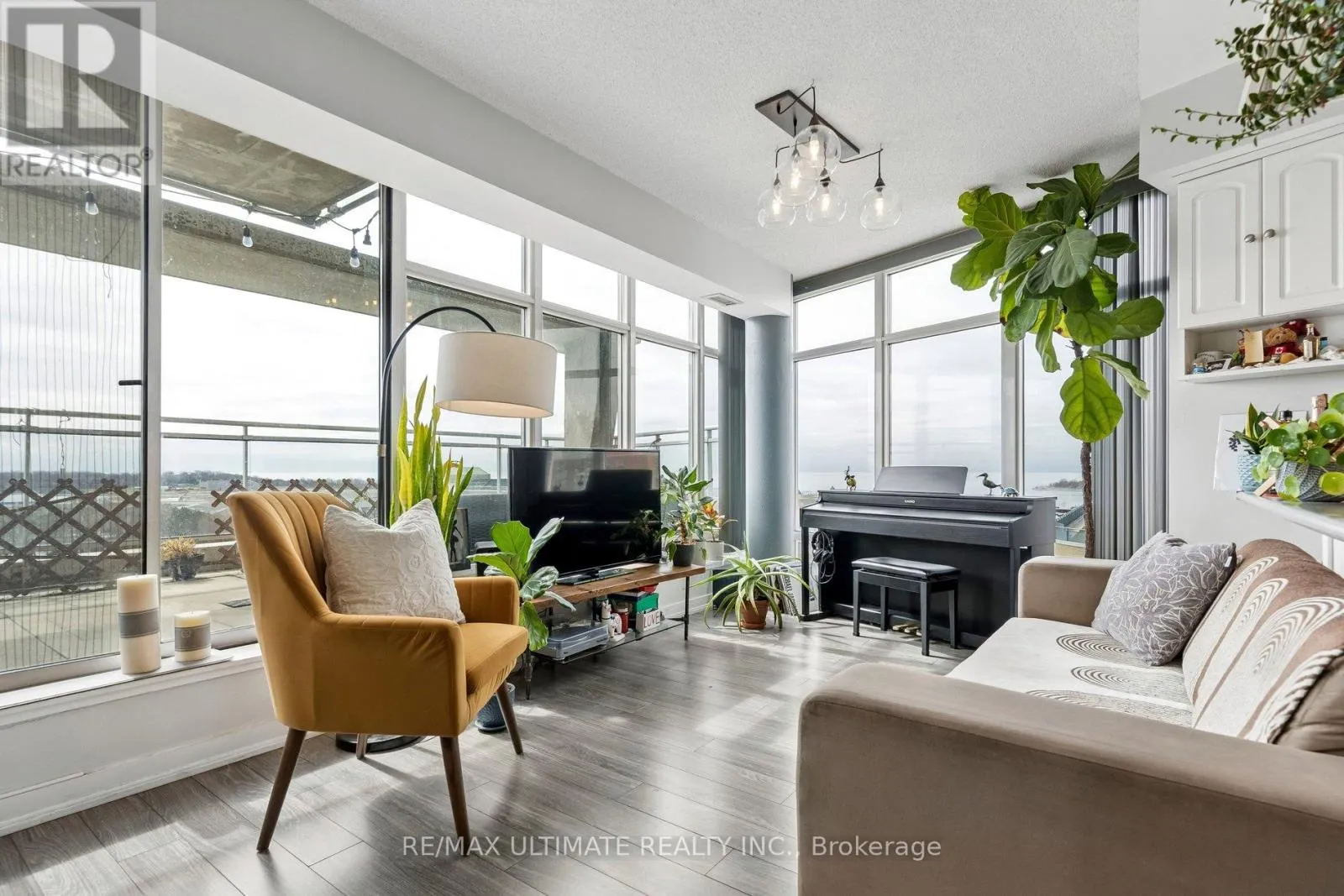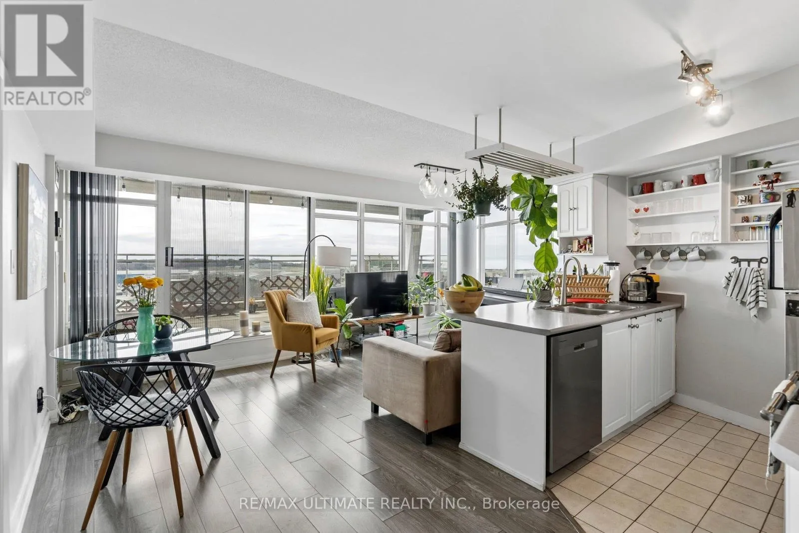 Step into this exceptional, sun-drenched corner condo featuring a rare 322 sq ft private terrace with breathtaking views of the lakeshore. This true 1+1 bedroom layout offers an ideal open-concept kitchen, living, and dining area framed by panoramic waterfront vistas. The primary bedroom boasts oversized windows, a large closet, and direct terrace access. The solarium is spacious and perfect for