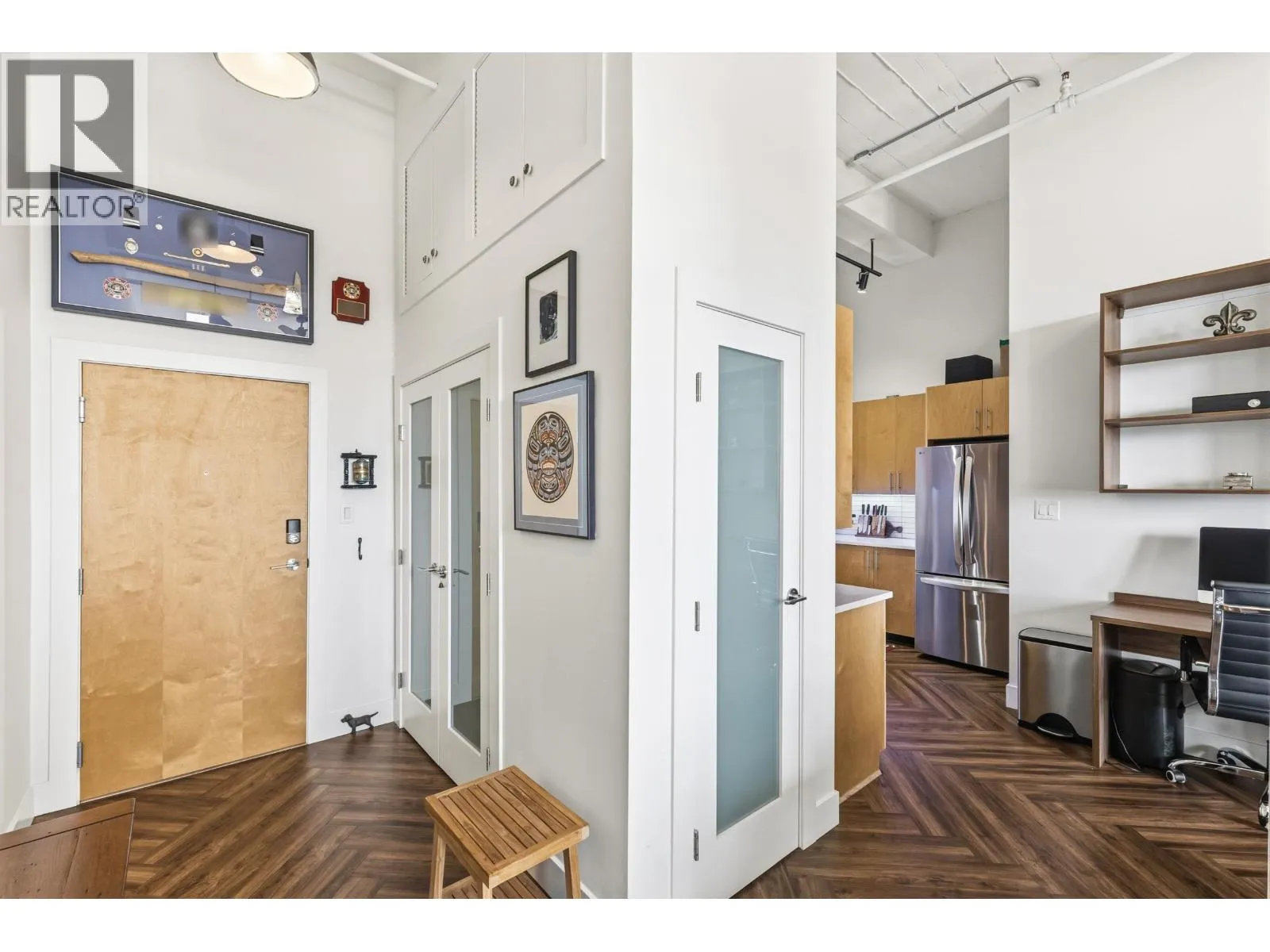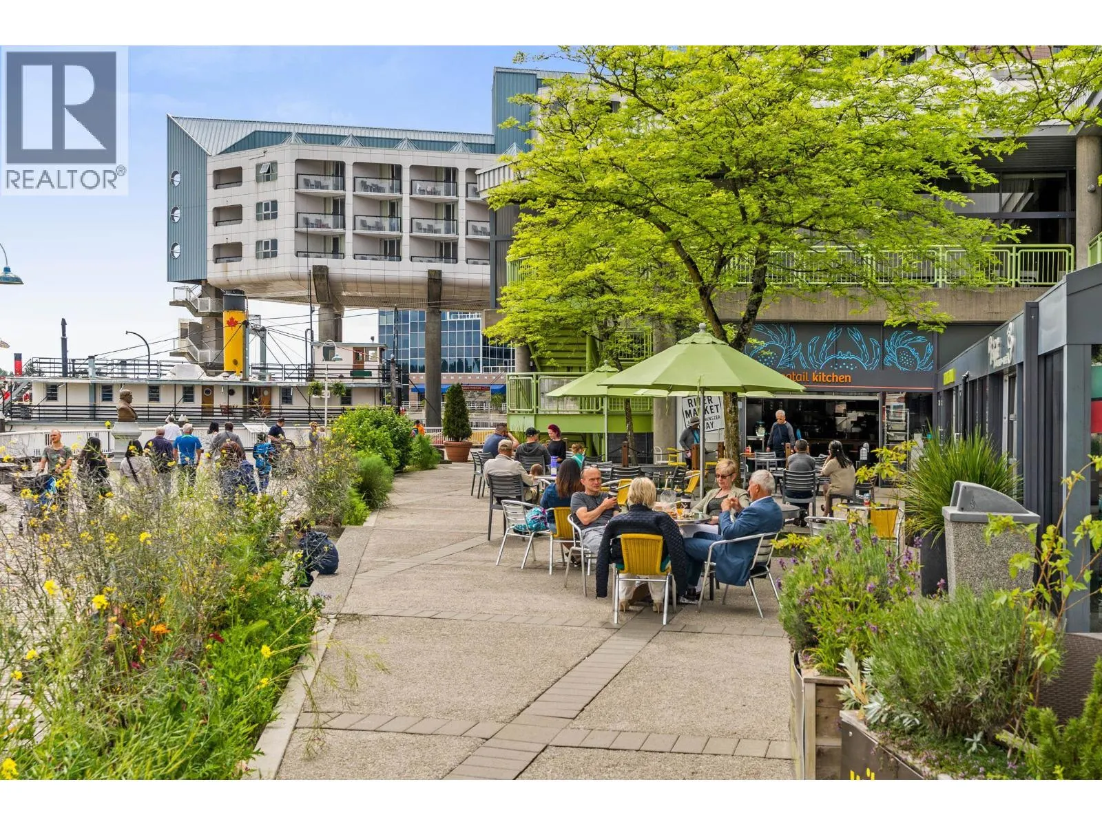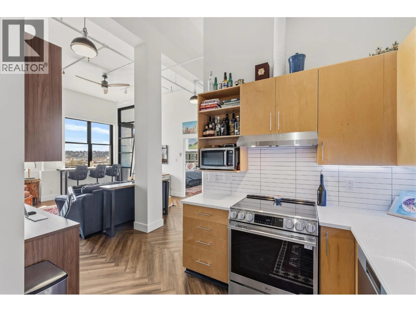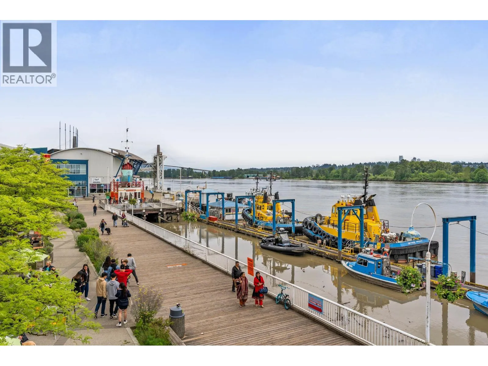 Come join the C2C lifestyle! Enjoy spectacular Fraser River and City views from every window, showcasing breathtaking sunrises and serene full moon evenings. This exceptional END unit boasts towering 13 foot ceilings set in a beautifully preserved historic concrete building rich in character. This fully renovated home features massive windows that flood the space with natural light, a gas fireplace