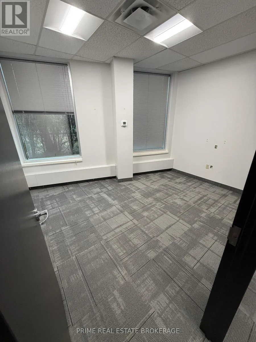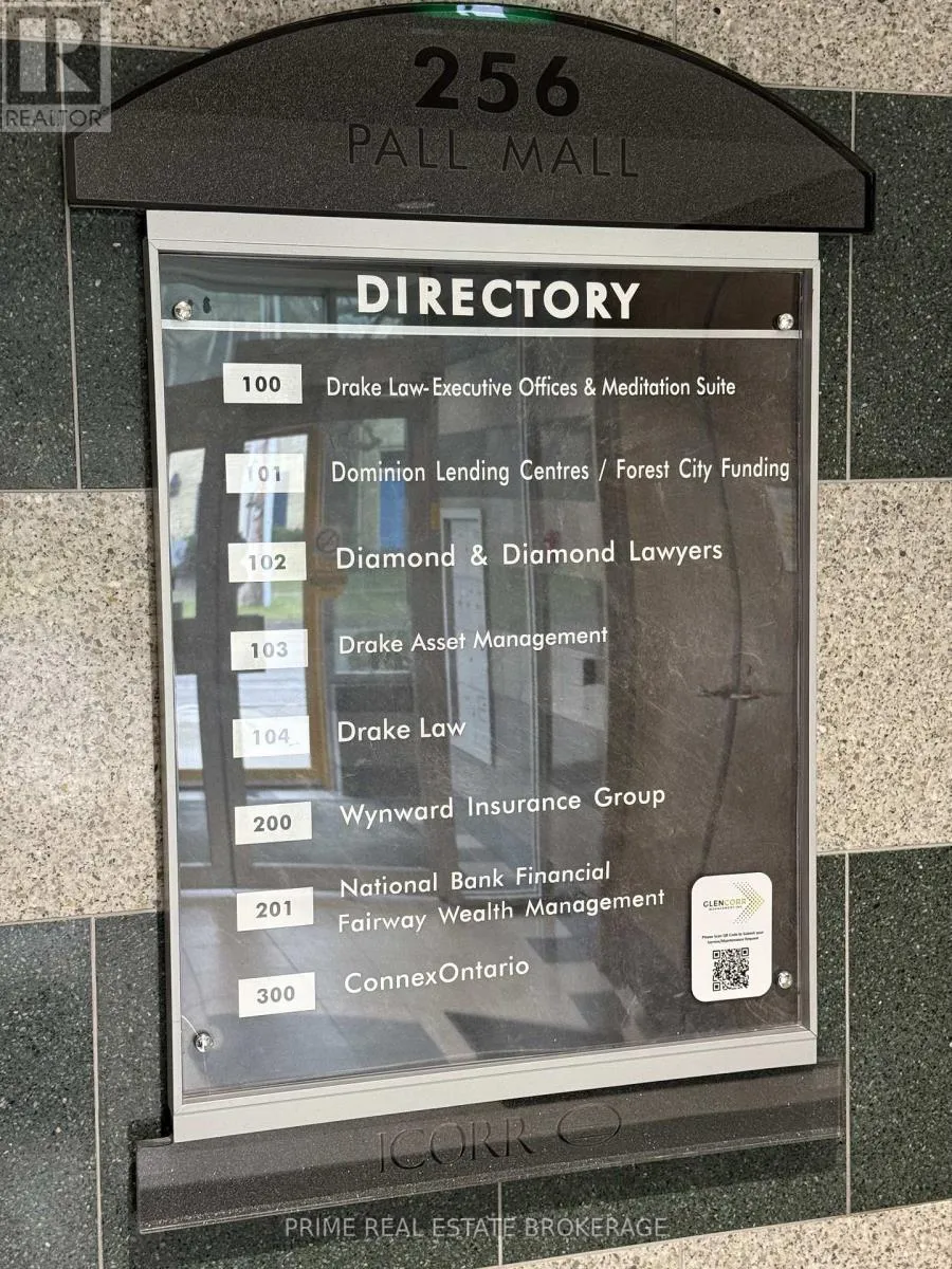 This premium 969-square-foot main-floor office suite, located at 256 Pall Mall Street (Suite 100) in London, Ontario ,offers a high-visibility sublease opportunity under OF1 zoning for a variety of professional office and commercial services. The functional layout includes four private offices and a dedicated reception area, available at a competitive gross rent of $2,600+hst per month. The current term runs