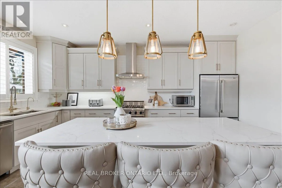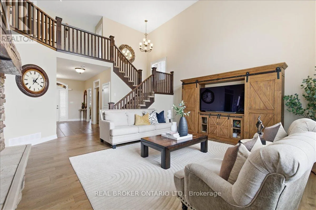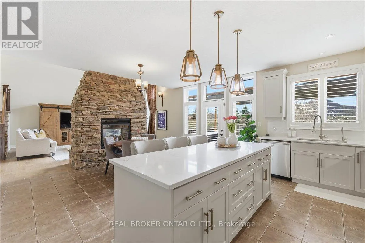 Set in Deer Ridge Estates, this four-bedroom home offers over 4,500 sq ft of finished living space on a mature lot backing onto green space with a private, scenic backdrop. From the moment you step inside, the scale is undeniable. A true two-storey great room rises above the main level, wrapped in windows and anchored by a floor-to-ceiling stone, double-sided