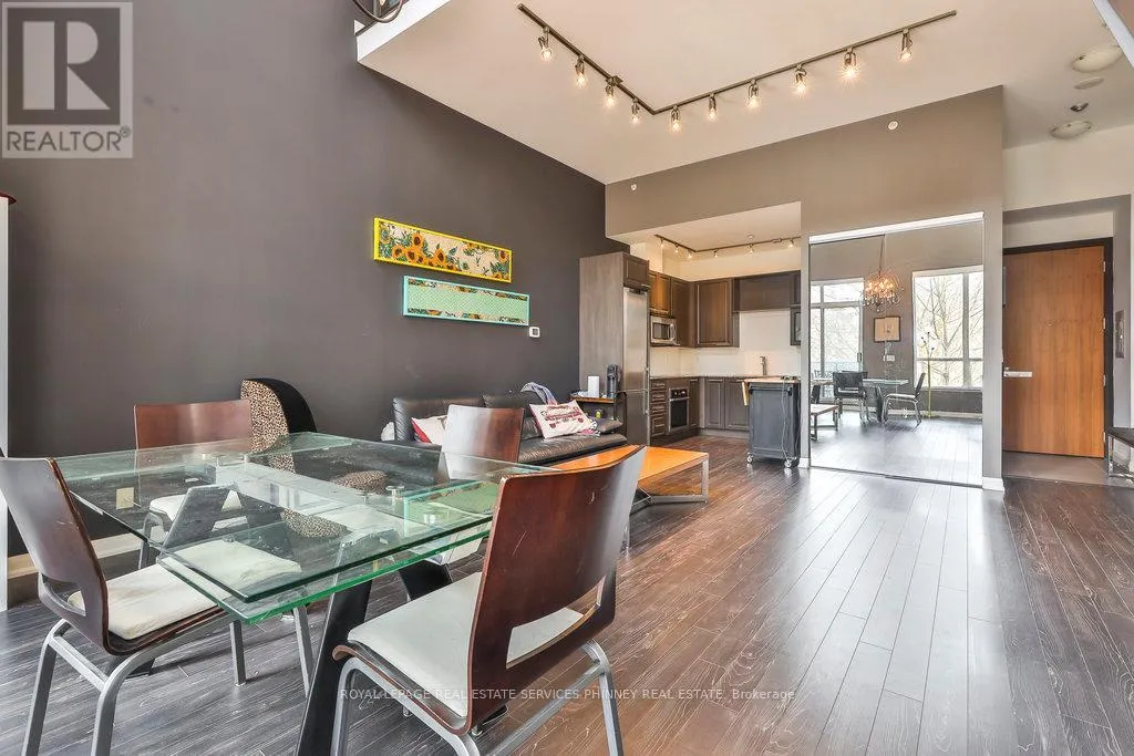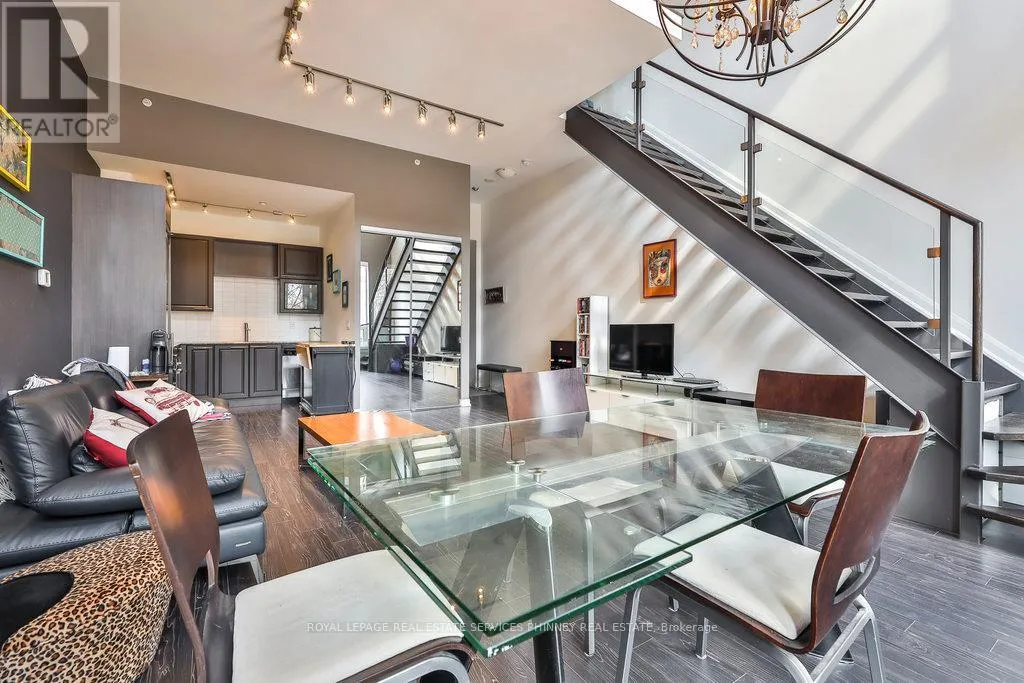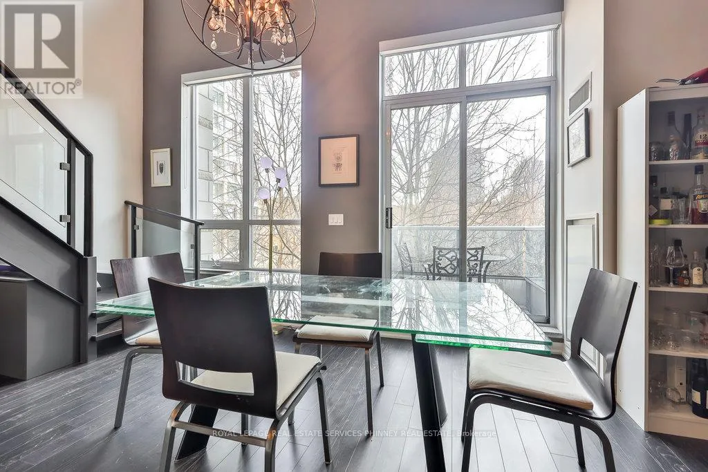 A sophisticated loft-style residence in the prestigious 500 Condos & Lofts, tailored for modern urban professionals. Flooded with natural light from expansive floor-to-ceiling windows, this impressive suite features soaring 17′ ceilings and a thoughtfully designed open-concept layout, ideal for both productive workdays and refined entertaining. The upper-level primary retreat offers a dedicated den space, perfectly suited for a private home