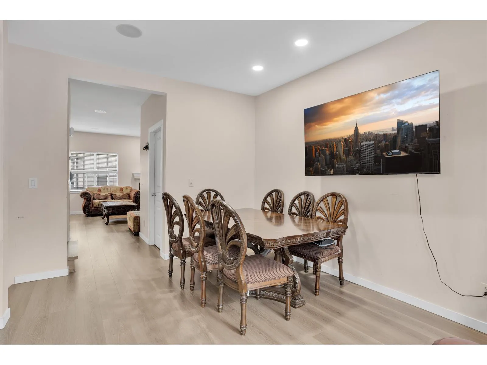 Welcome to Sunridge Estates in sought-after Panorama Ridge! This well-kept south-facing townhouse features 3 bedrooms, 2.5 bathrooms, plus a large rec room with separate entrance-ideal as a 4th bedroom, office, or gym. Main floor offers 9′ ceilings, powder room, and a cozy kitchen with black appliances. Laminate flooring throughout kitchen, dining, and family areas. Built-in sound system adds extra comfort.