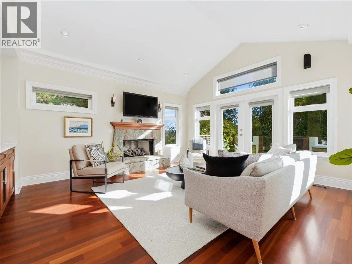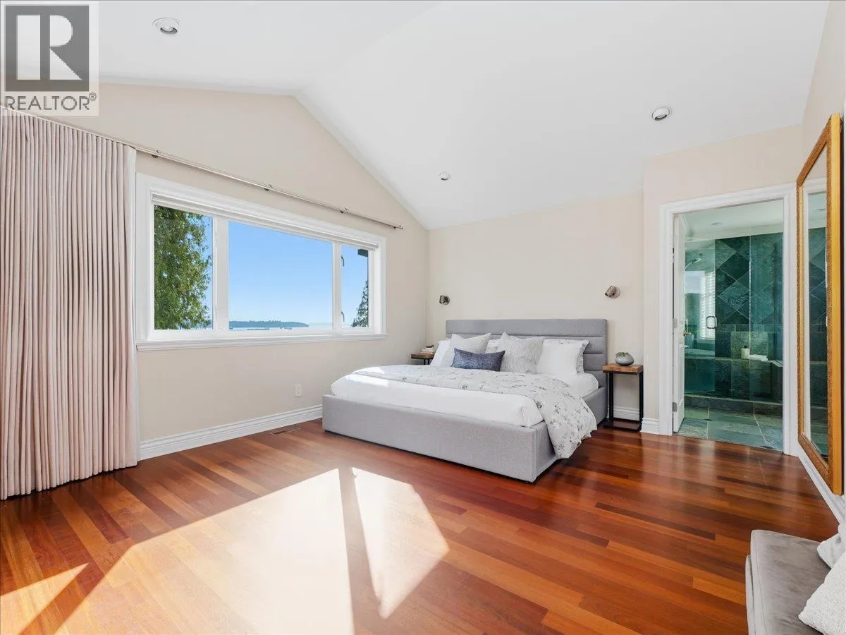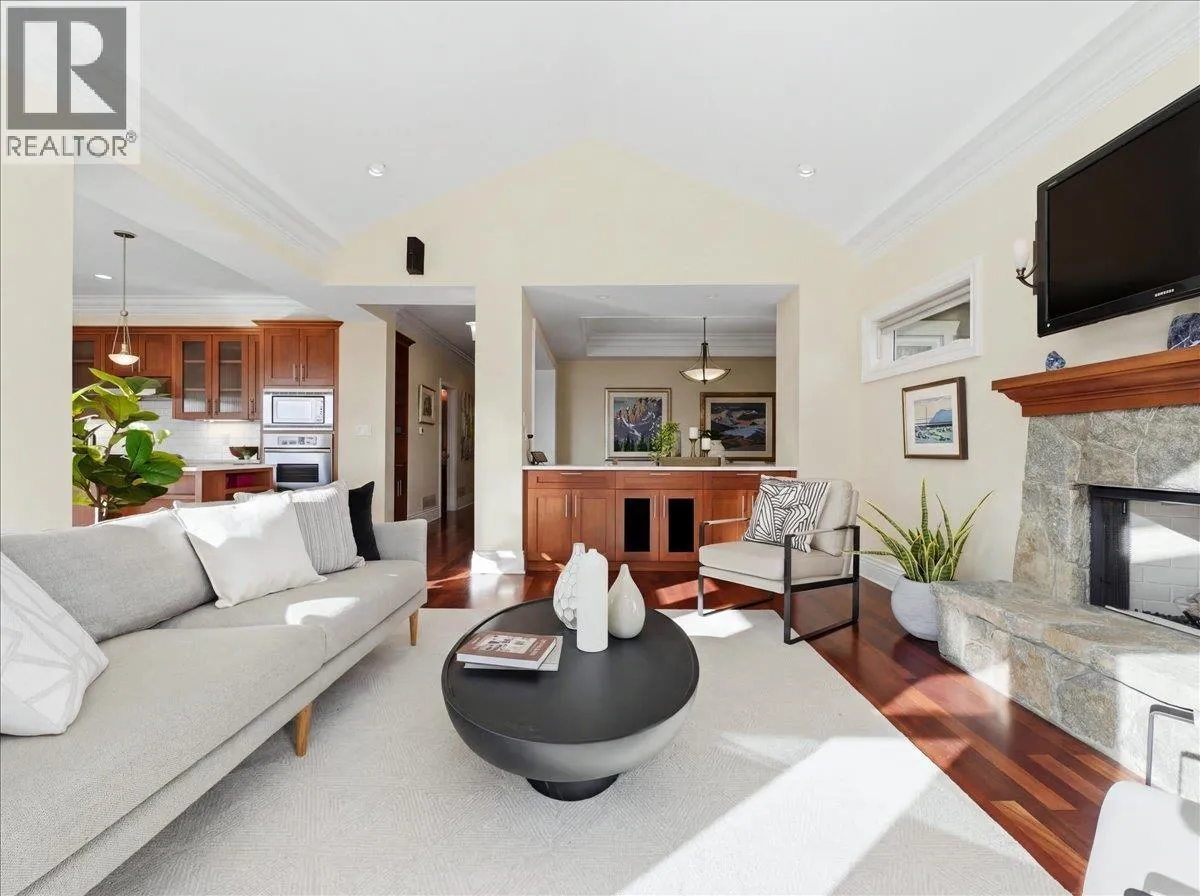 IMPRESSIVE OCEAN views highlight this well-maintained residence, positioned on a serene street offering sunrises over Mt. Baker and sunsets toward Vancouver Island. Inside, pristine hardwood floors, crown molding, vaulted ceilings, and custom millwork provide architectural elegance. The main floor presents an elegant office with fireplace, open-concept living area with gourmet kitchen boasting a Viking gas range/oven, electric oven, and extended