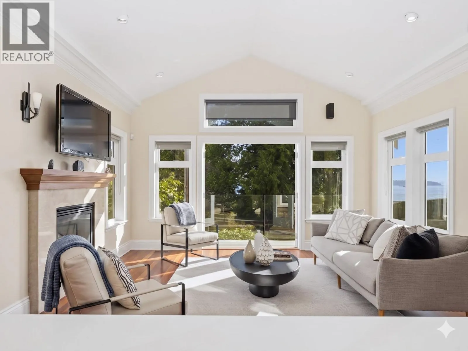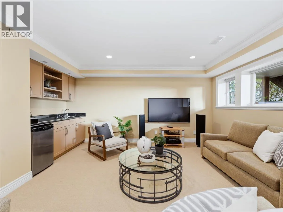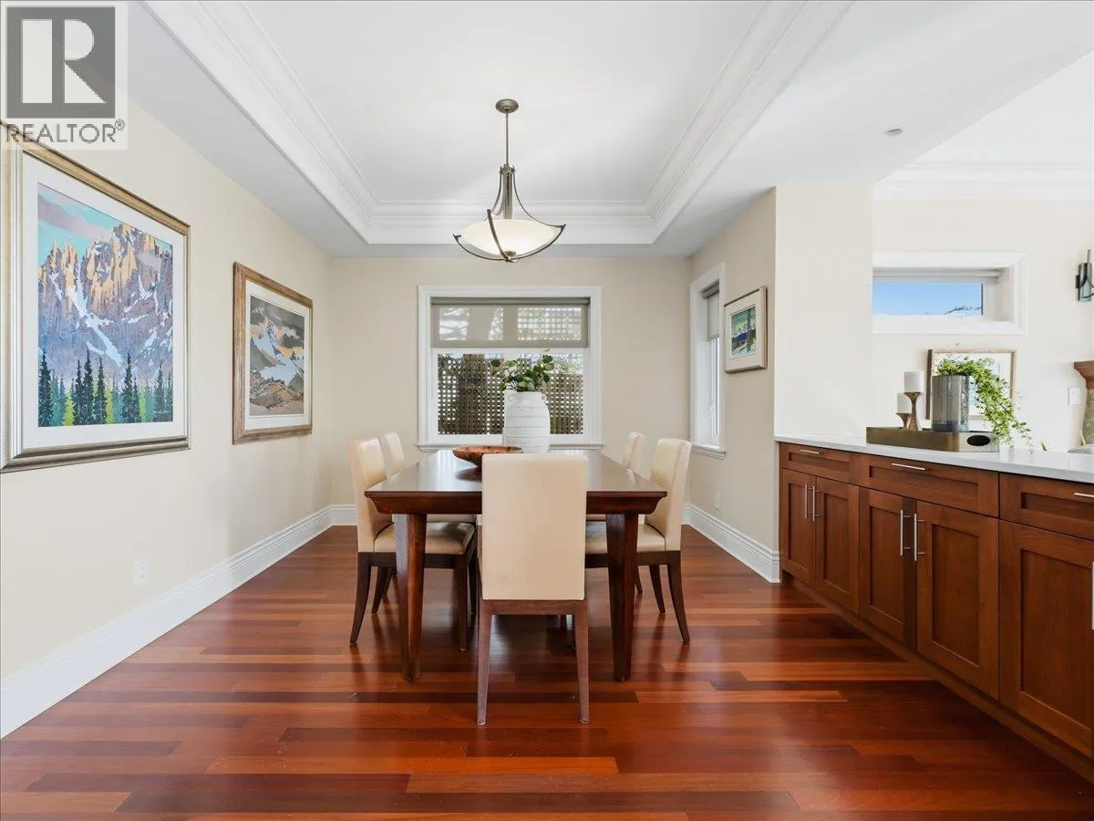 IMPRESSIVE OCEAN views highlight this well-maintained residence, positioned on a serene street offering sunrises over Mt. Baker and sunsets toward Vancouver Island. Inside, pristine hardwood floors, crown molding, vaulted ceilings, and custom millwork provide architectural elegance. The main floor presents an elegant office with fireplace, open-concept living area with gourmet kitchen boasting a Viking gas range/oven, electric oven, and extended