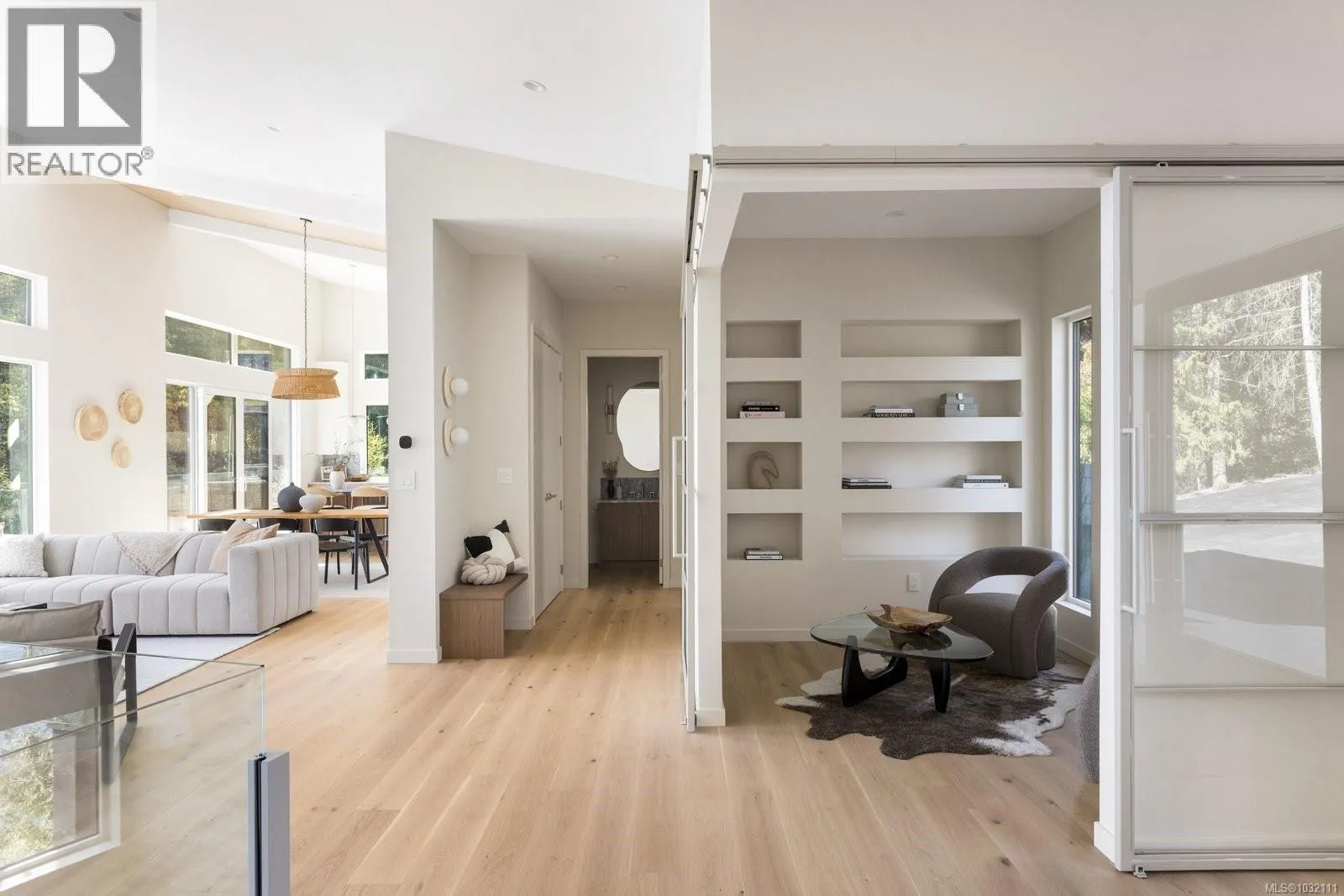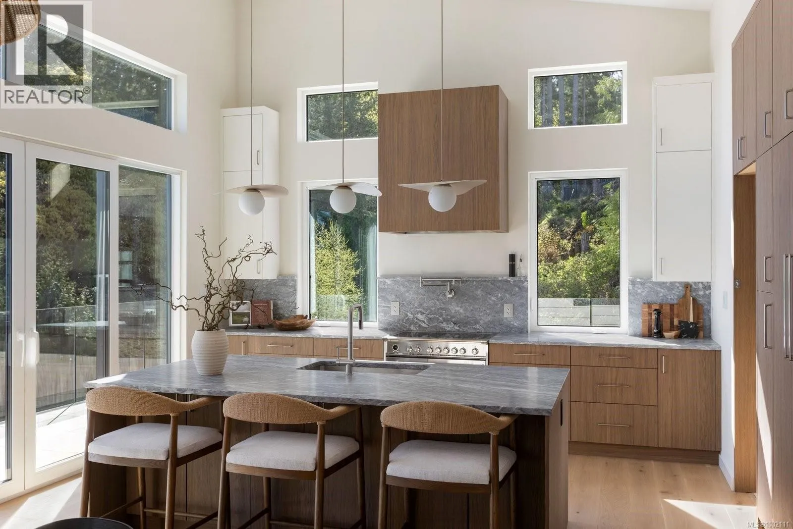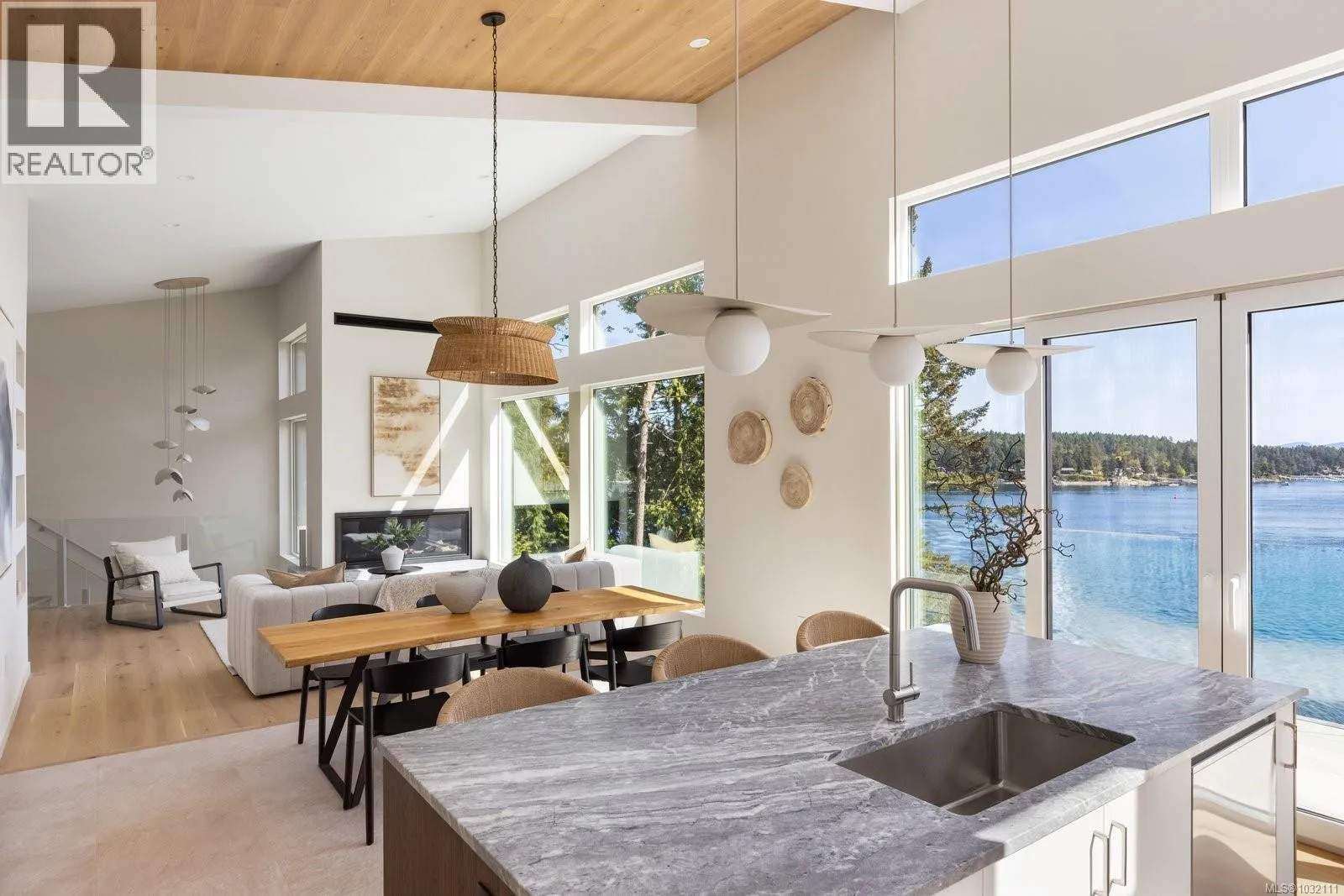 Crafted by Villamar Construction, this exceptional oceanfront residence with beach access is set on a private 0.90-acre estate in coveted North Saanich. Offering 3,656 sq ft of refined living, this 4-bed + office, 3-bath home seamlessly blends modern architecture with timeless West Coast design. The open-concept main level is filled with natural light, highlighted by 10-15′ ceilings with wood accent,