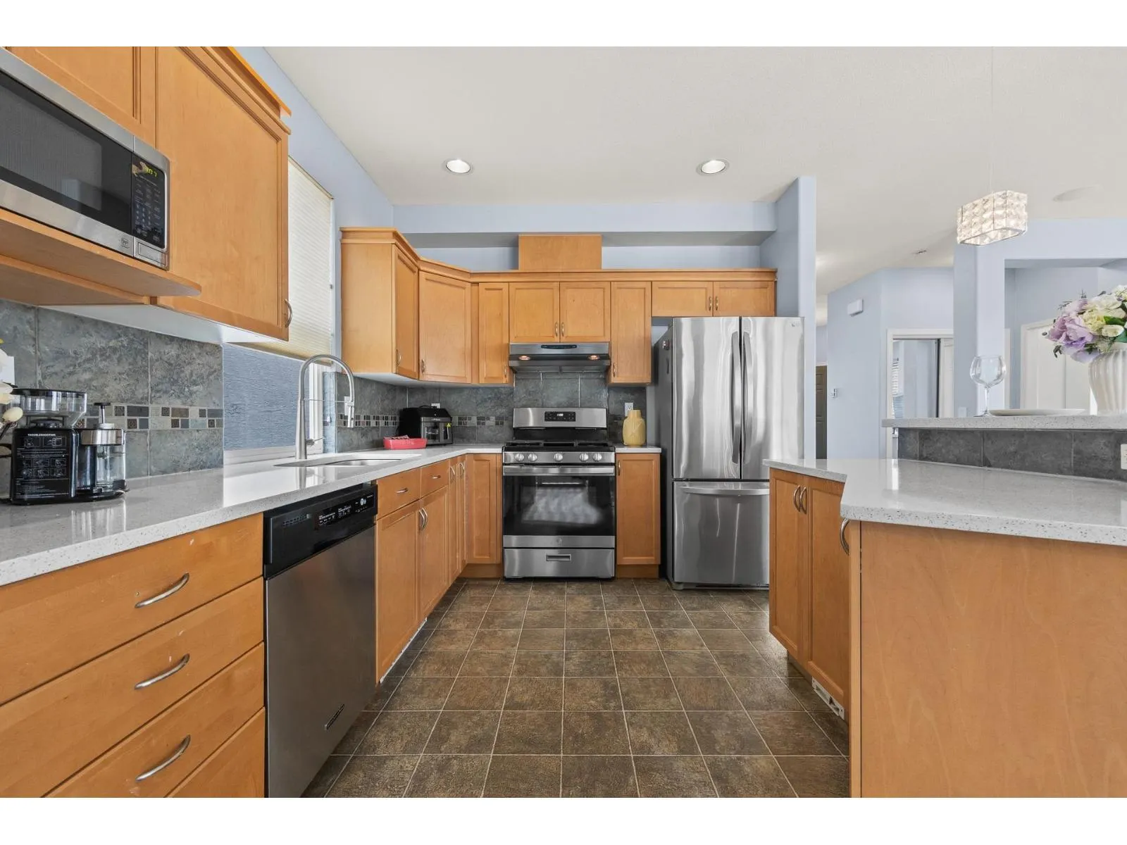Beautiful and unique Foxridge home featuring 3 spacious bedrooms + a den upstairs, along with a 2-bedroom basement suite, perfect as a mortgage helper with separate entrance. The main floor offers a functional great room layout with an open-concept kitchen, stainless steel appliances, and rich hardwood flooring. A formal living area provides flexibility as an additional office, or oversized multipurpose