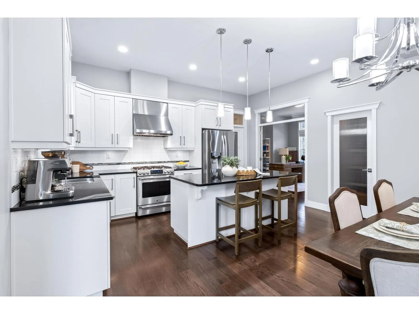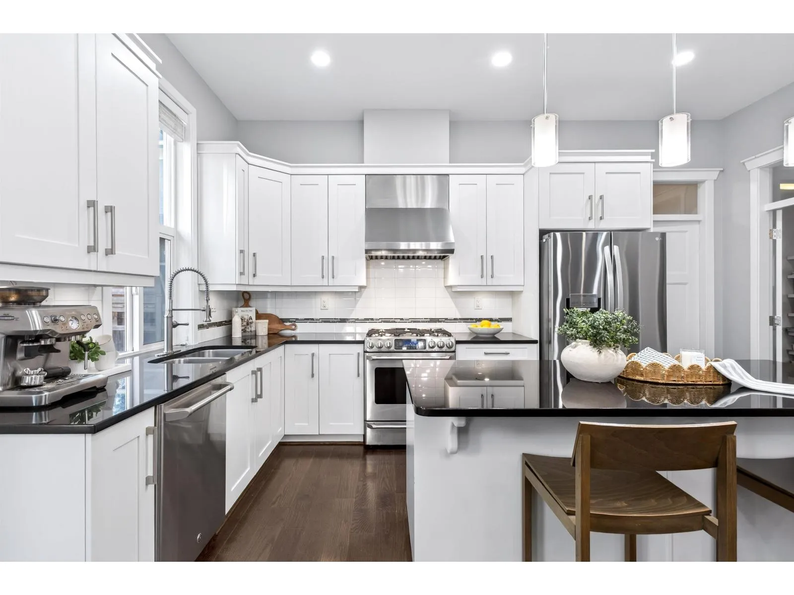 Morgan Heights living in the heart of Grandview. This beautifully crafted Foxridge-built home faces a greenbelt and bike path, offering a peaceful outlook and added privacy, while the south-facing backyard fills the home with natural light. Featuring 4 bedrooms and 3.5 bathrooms, the home boasts modern finishes throughout, air conditioning, and a thoughtfully designed entertainer’s main floor with hardwood floors,
