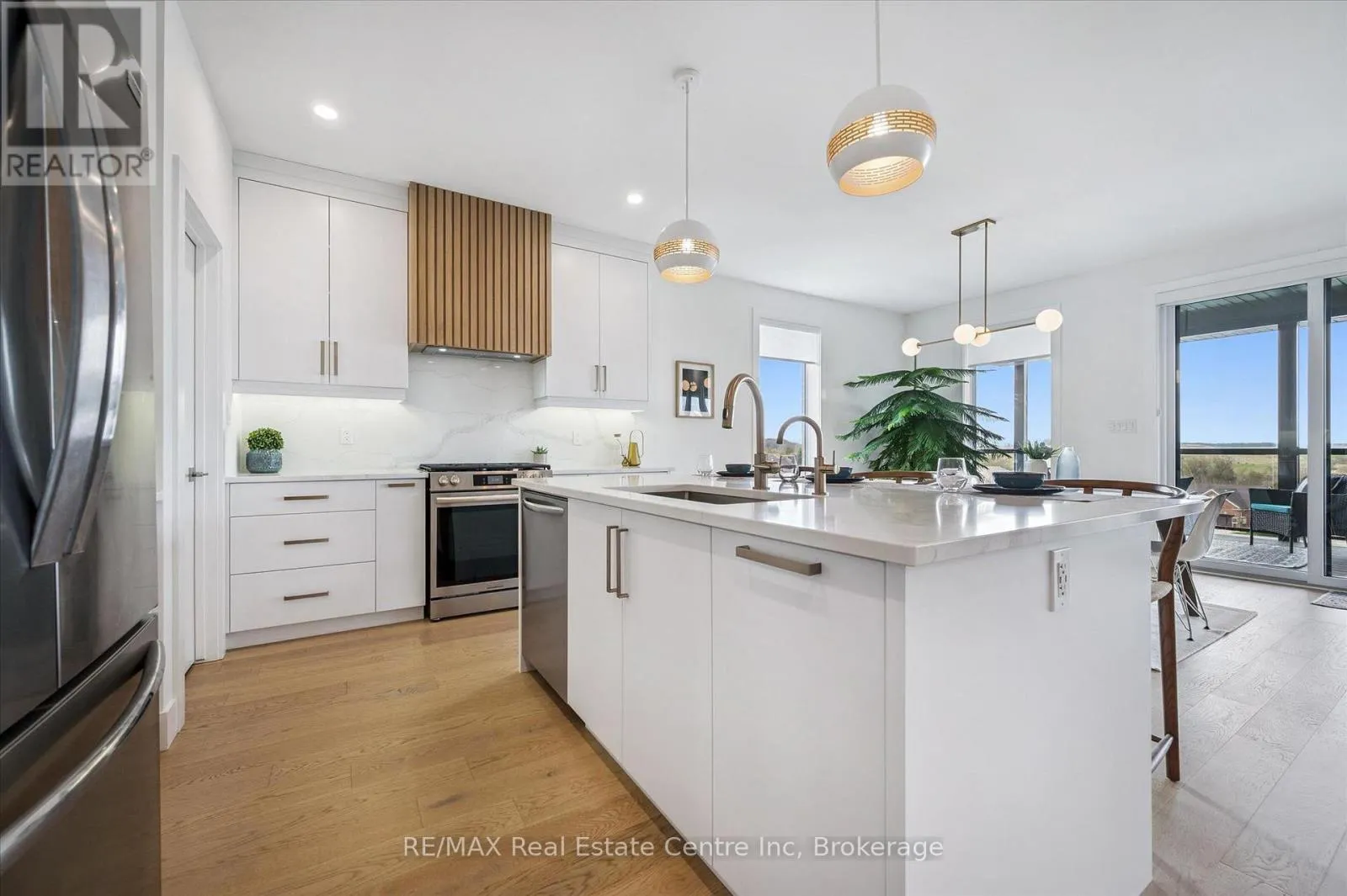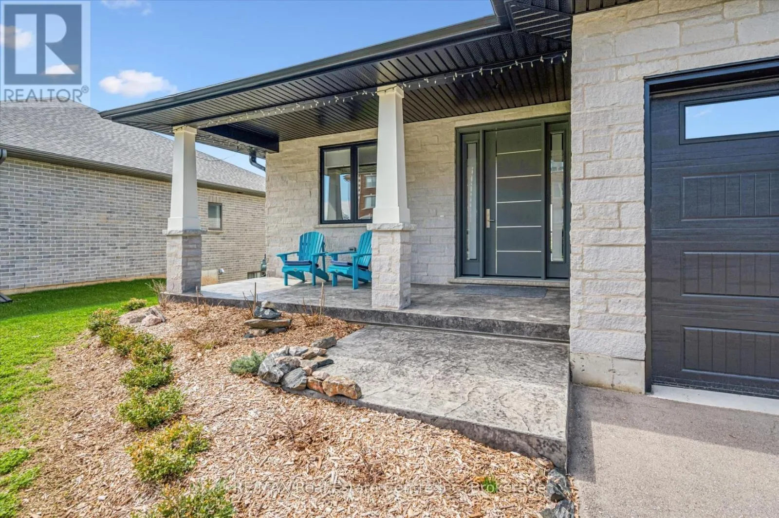 Spectacular 2-bdrm, 2-bath bungalow with W/O bsmt on oversized lot in executive neighbourhood within walking distance to downtown Drayton! Stone exterior, stamped concrete-covered front porch, 2-car garage & landscaping create a refined first impression. 9′ ceilings, open-concept layout, oversized windows & engineered hardwood set the tone for a modern interior. Chef-inspired kitchen W/custom extended cabinetry W/soft-close doors, wood accent rangehood,