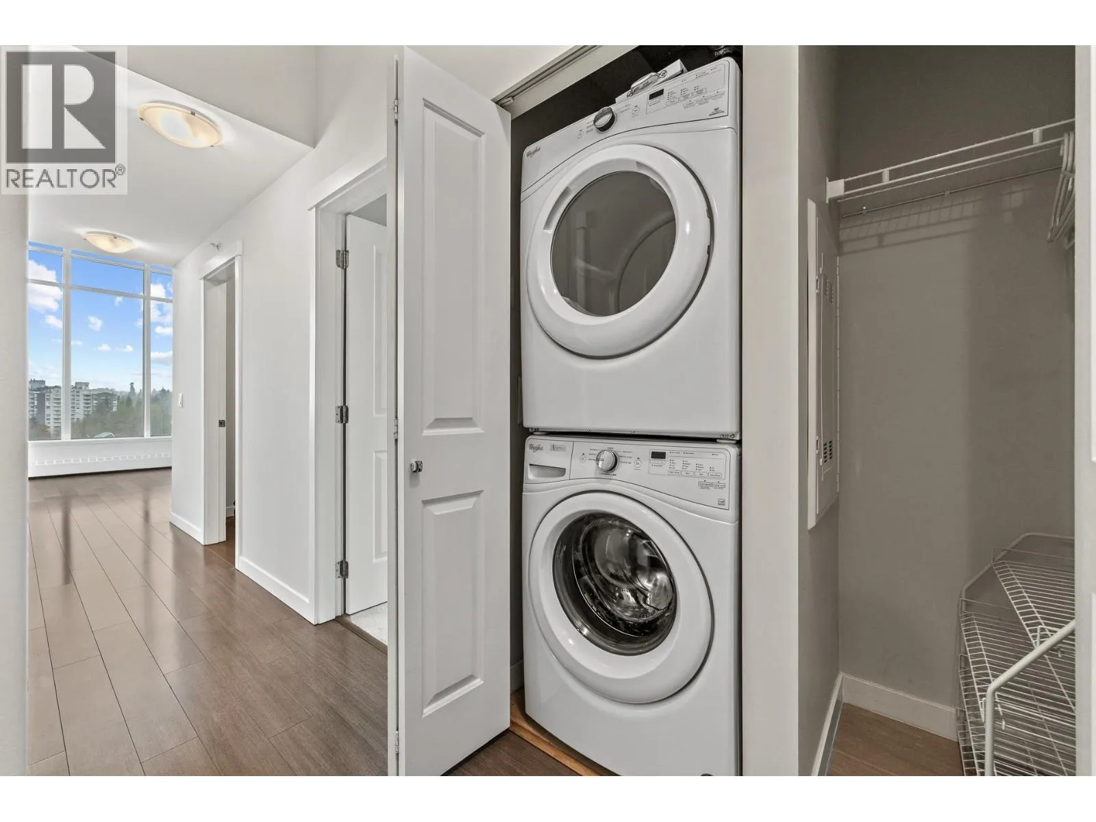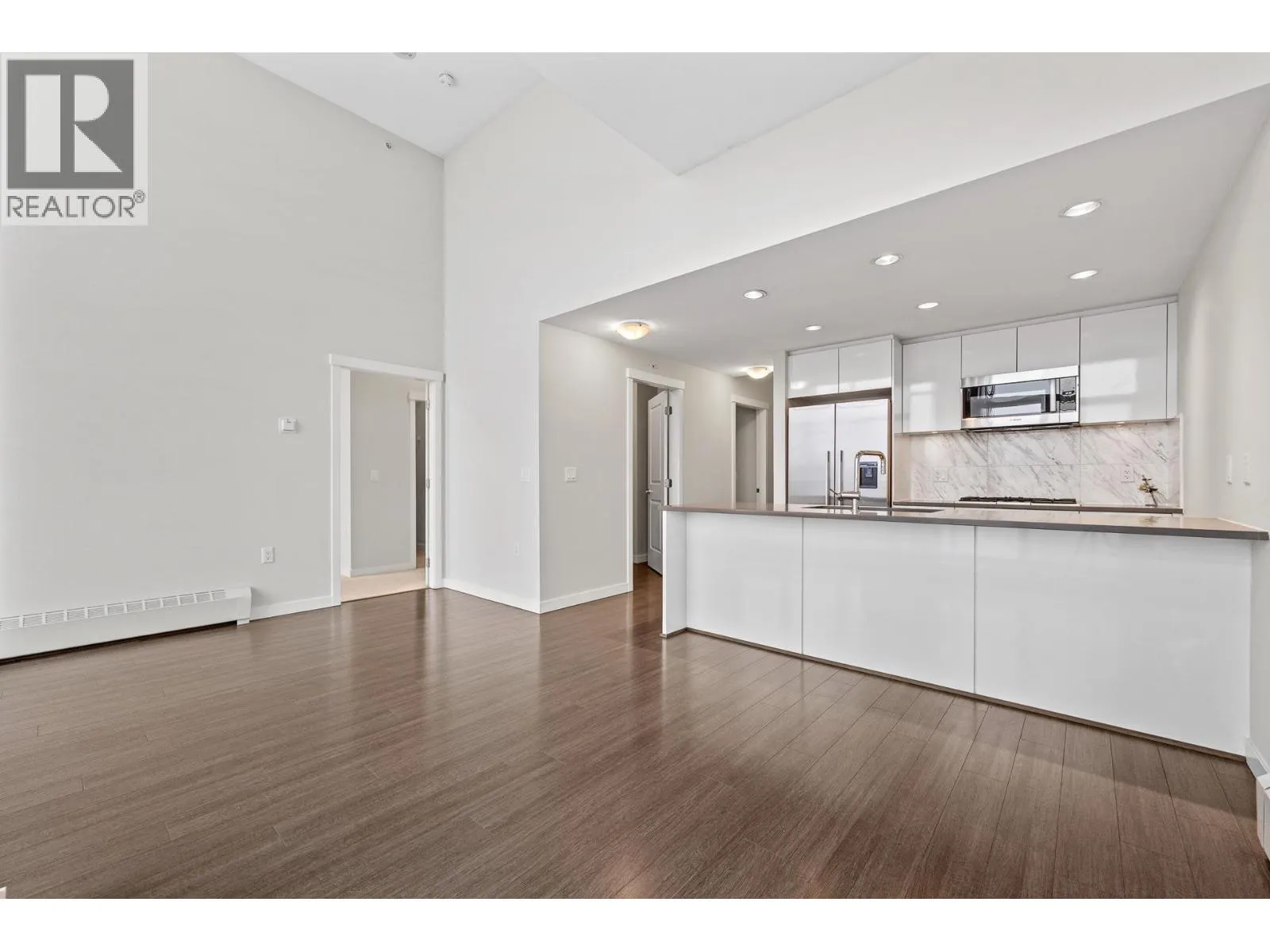 Refined corner Penthouse 2-bedroom, 2-bath residence at Rhythm by Polygon Homes, located in the vibrant River District waterfront community. This northwest-facing home offers over-height ceilings, abundant natural light, and a smart, spacious layout. Features include sleek radiant baseboards, premium Bosch appliances, and a spa-inspired ensuite with walk-in shower. Enjoy generous in-home storage and modern finishes throughout. Residents have access to