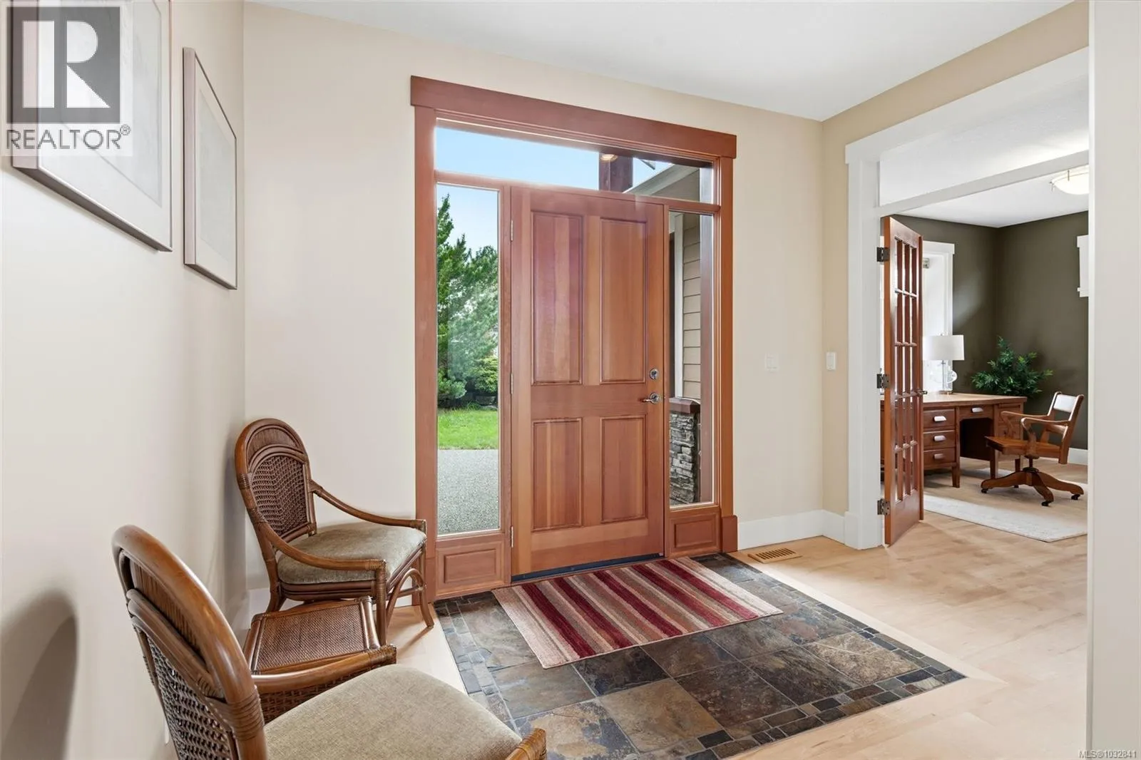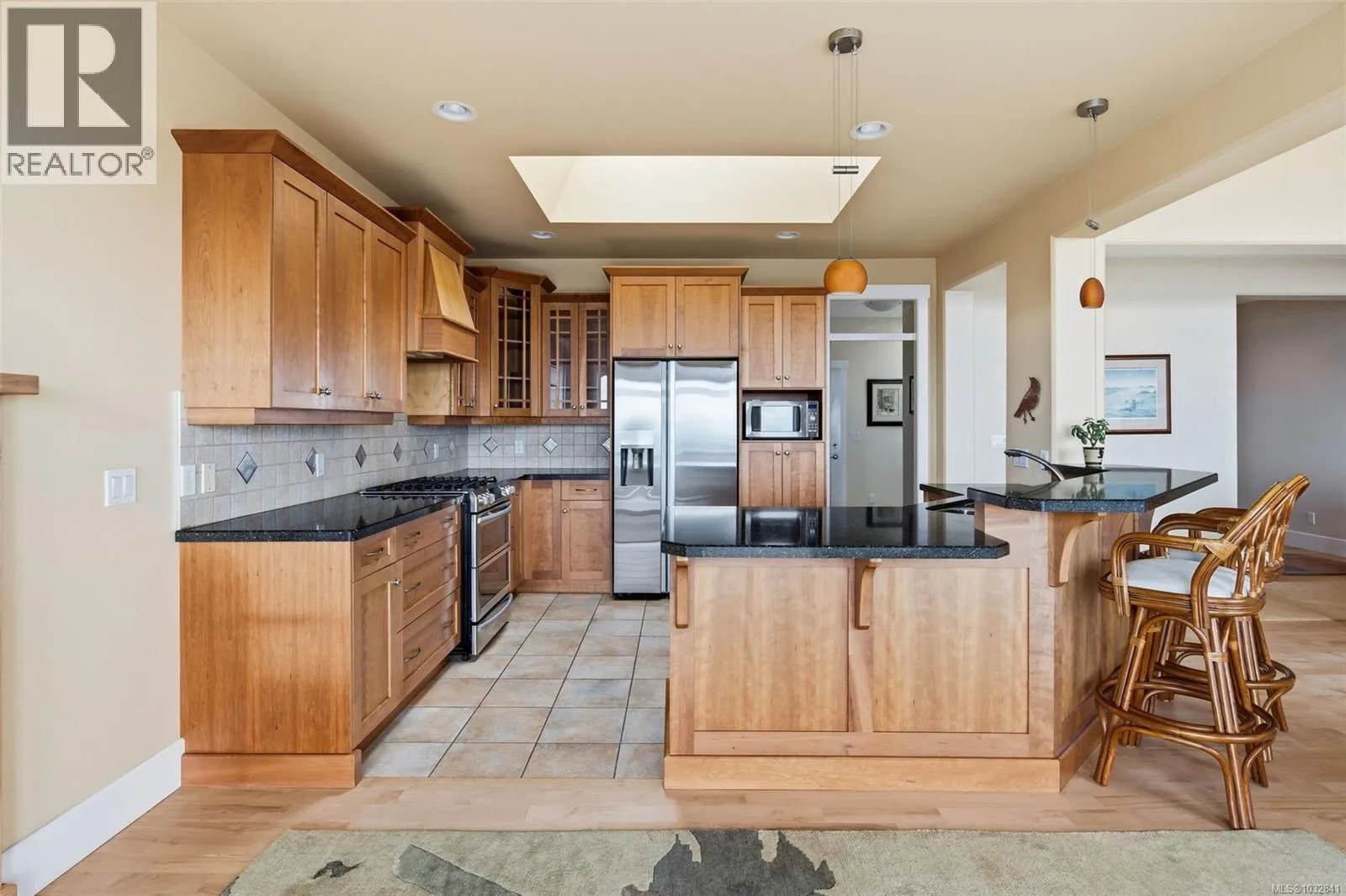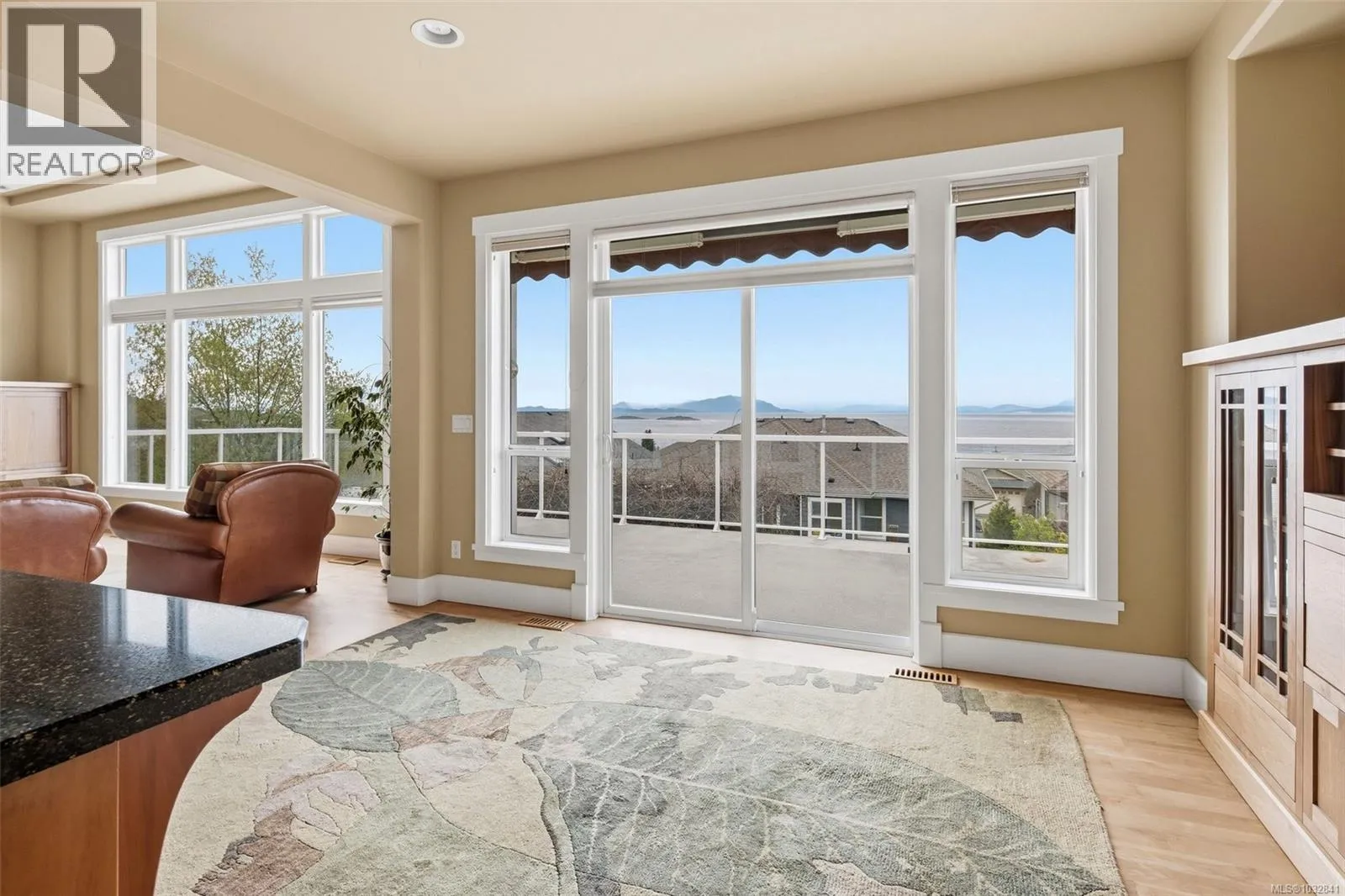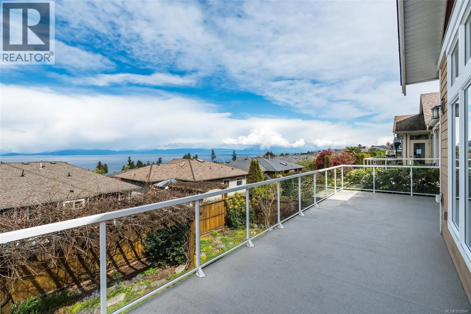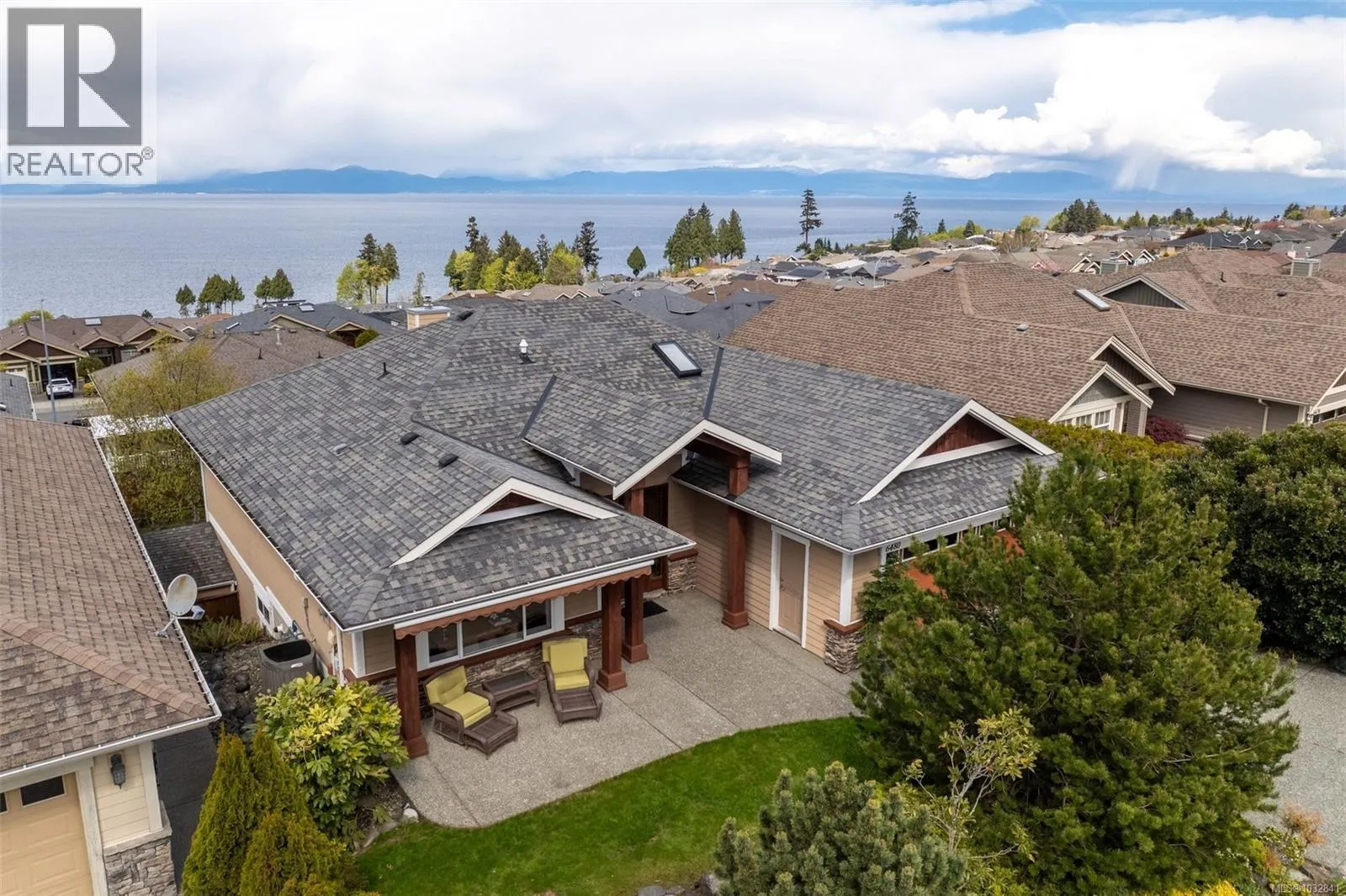 Perched on a quiet cul-de-sac, this custom-built executive rancher is offered for the first time, capturing sweeping panoramic ocean views and a sense of permanence. Thoughtfully designed, the main level unfolds with nearly 10’ ceilings, natural light, and a seamless connection between the great room, dining, and kitchen, creating an atmosphere that feels open yet grounded. Timeless materials hardy plank
