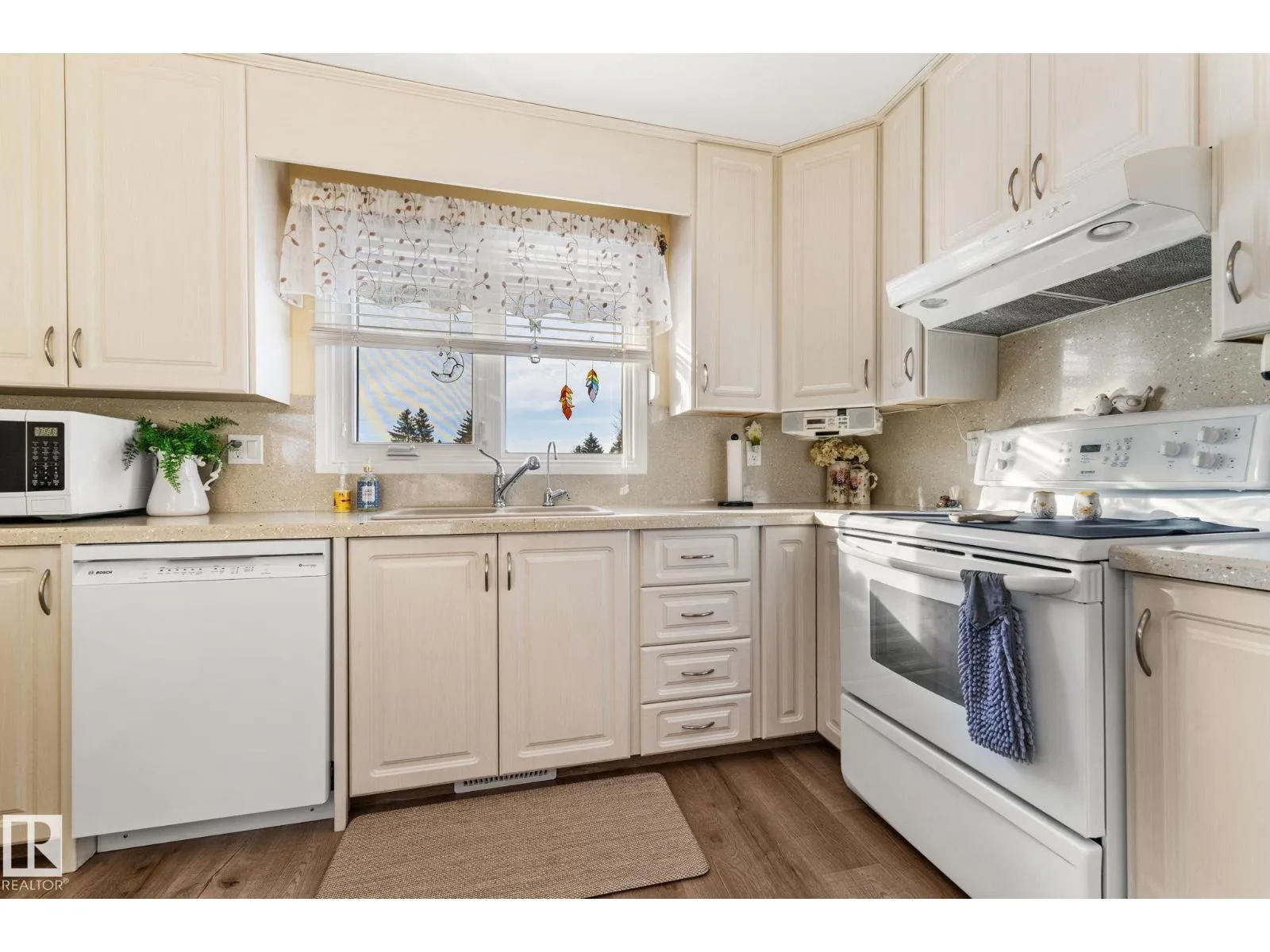 Welcome to this beautifully upgraded bi-level home, perfectly situated in a sought-after family-friendly location. Set on a generous lot, this property offers ample parking, a large garage, a fully fenced backyard with low-maintenance landscaping—ideal for both everyday living and entertaining.Step inside to discover a bright and inviting main level featuring luxury vinyl plank flooring throughout.The upgraded kitchen is a standout,