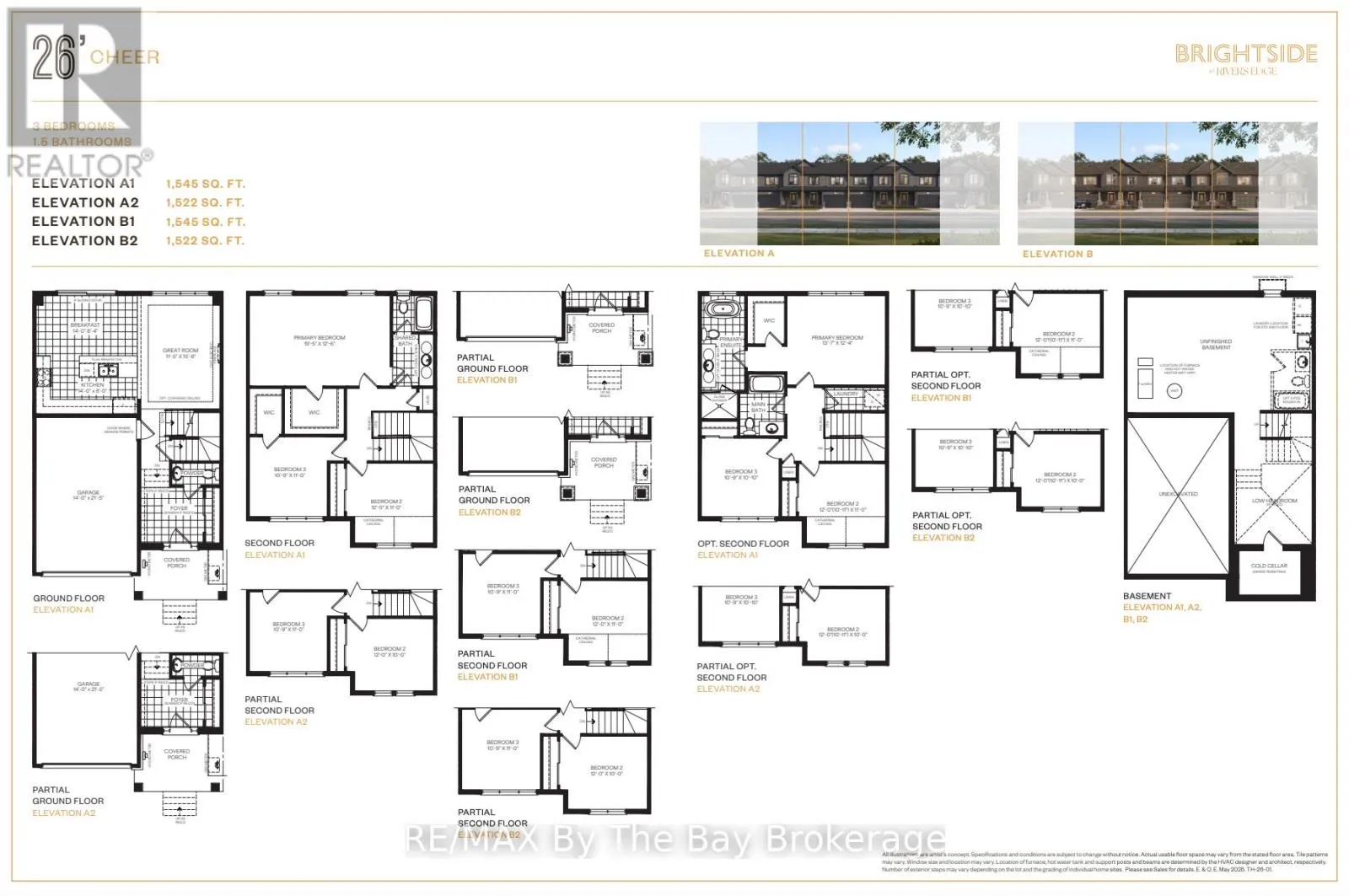 New HST Rebate Pricing! To Be Built (Fall 2027) – Affordable living in the Brightside at River’s Edge community. The ‘Cheer’ townhouse provides 3 bedrooms and 1.5 bathrooms with 1,545 sq ft. As you step inside the home, there is a spacious foyer with a double door closet and 2pc bathroom. The main living area is open concept with plenty