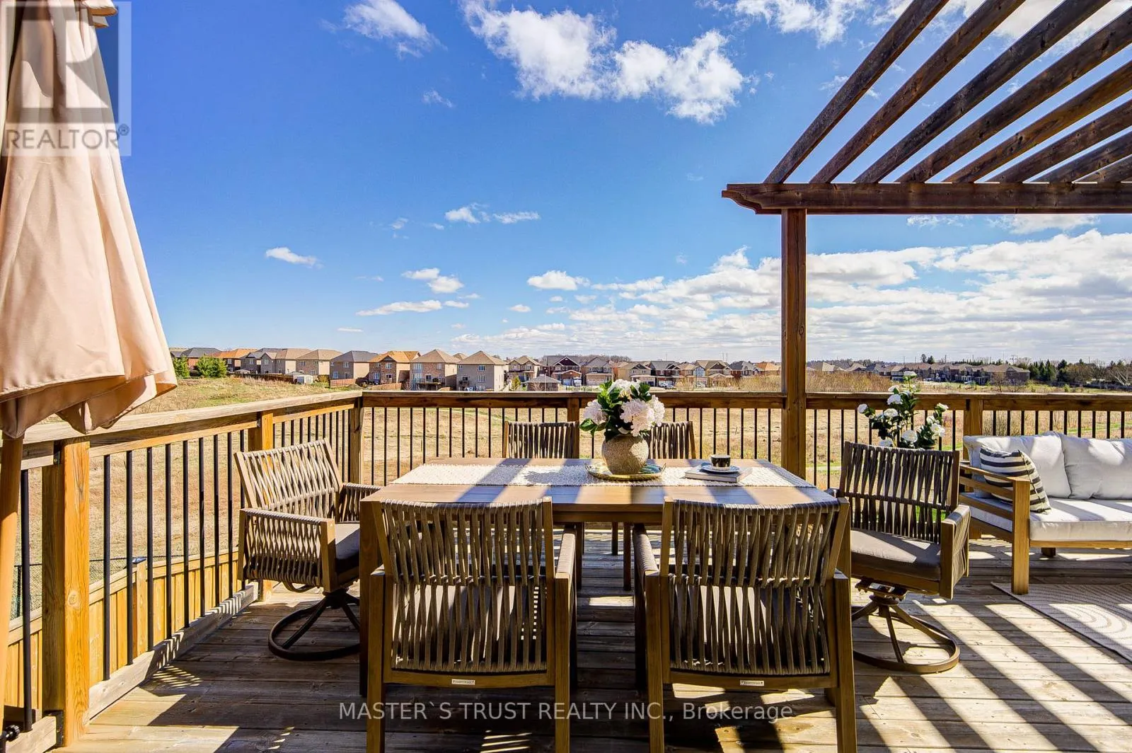 Stunning walk-out home on a premium pie-shaped lot with no rear neighbors, backing onto open green space and trail. Featuring a large, professionally built deck with a Town-approved permit, thoughtfully designed with multiple functional zones for outdoor dining, entertaining, and relaxing. Rare offering with exceptional privacy and a peaceful, nature-filled setting that is hard to find. This bright and functional