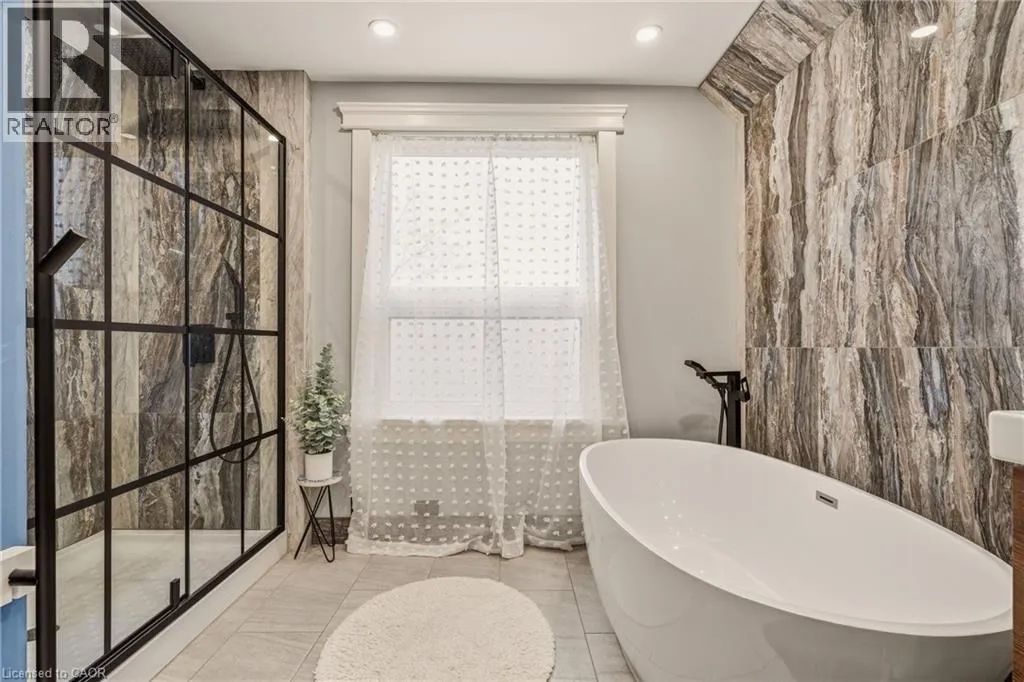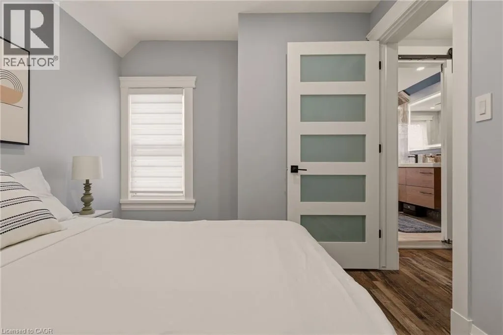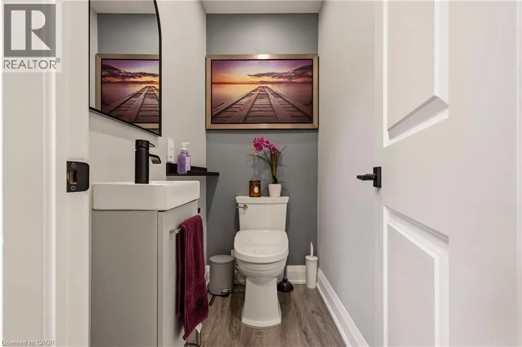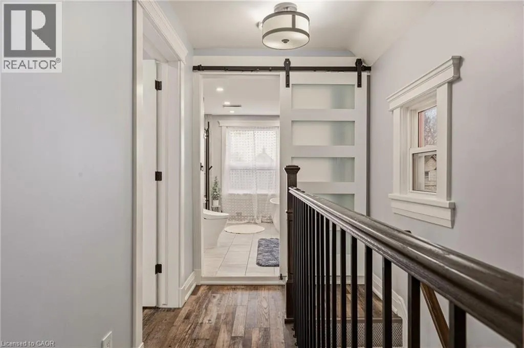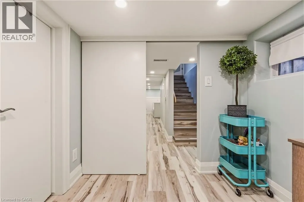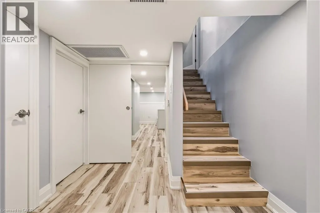 considered, with premium vinyl flooring throughout and new carpet on the stairs, all completed within the last 3 years. The home’s electrical, plumbing and venting have all been updated within the last 4 years. Upstairs, the impressive primary suite is a true retreat, complete with custom cabinetry, a large custom closet, built-in pendant lighting, and dedicated light switches on each side of the bed, no bedside lamps required! A second spacious bedroom with ample closet space completes the upper level. The showpiece of the home is the stunning upper-level 6-piece bathroom, designed to feel like your own private spa. Featuring marble walls, a lighted niche, heated towel warmer, oversized double shower, freestanding tub, double vanity and a hidden laundry room. The finished basement adds two additional rooms with ample closet space and a third bathroom, while the unfinished attic provides valuable additional storage space. Outside, enjoy two dedicated parking spaces off the laneway, ample street parking, and the added privacy of having homes on only one side of the street. Conveniently located just 6 minutes to West Harbour GO, approx. 12 minutes to the highway, and close to schools, hospitals, shopping, mountain access, and more. Additional updates include waterproofing, sump pump and backflow valve installation in 2023, as well as a 3-year-old Rhino filtration system and water softener. This is a truly move-in ready home where every major update has already been done — all that is left to do is unpack and enjoy. (id:62650)