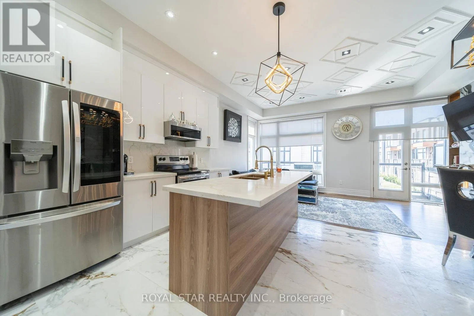Welcome To His Beuatiful Upgraded Modern And Chic Designed End Unit Home With High-End Finishes Throughout. Perfect For Comfortable Living And Stylish Entertaining. 3 Bedroom 4 Bathrooms Townhouse In Heart Of Vaughan. Filled With A Lot Of Natural Light, Large Windows, 10Ft Ceilings Main Floor With Enough Pot Lights Throughout. 9Ft Ceiling Second Floor. Modern Ceiling Light Fixtures, Over 160K