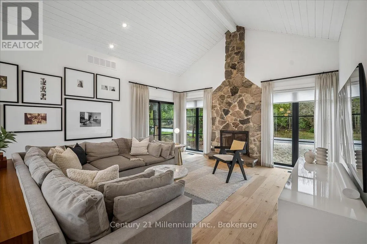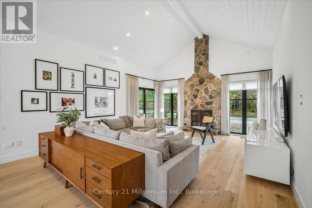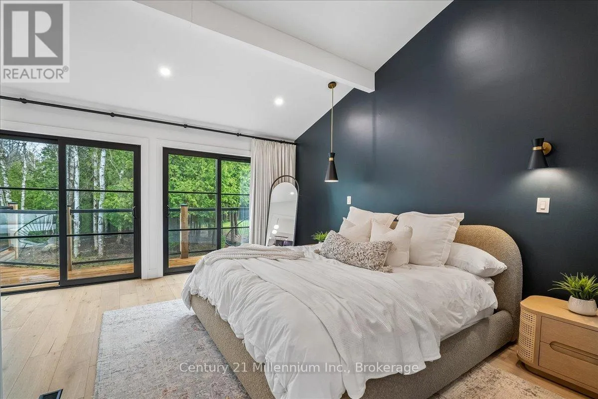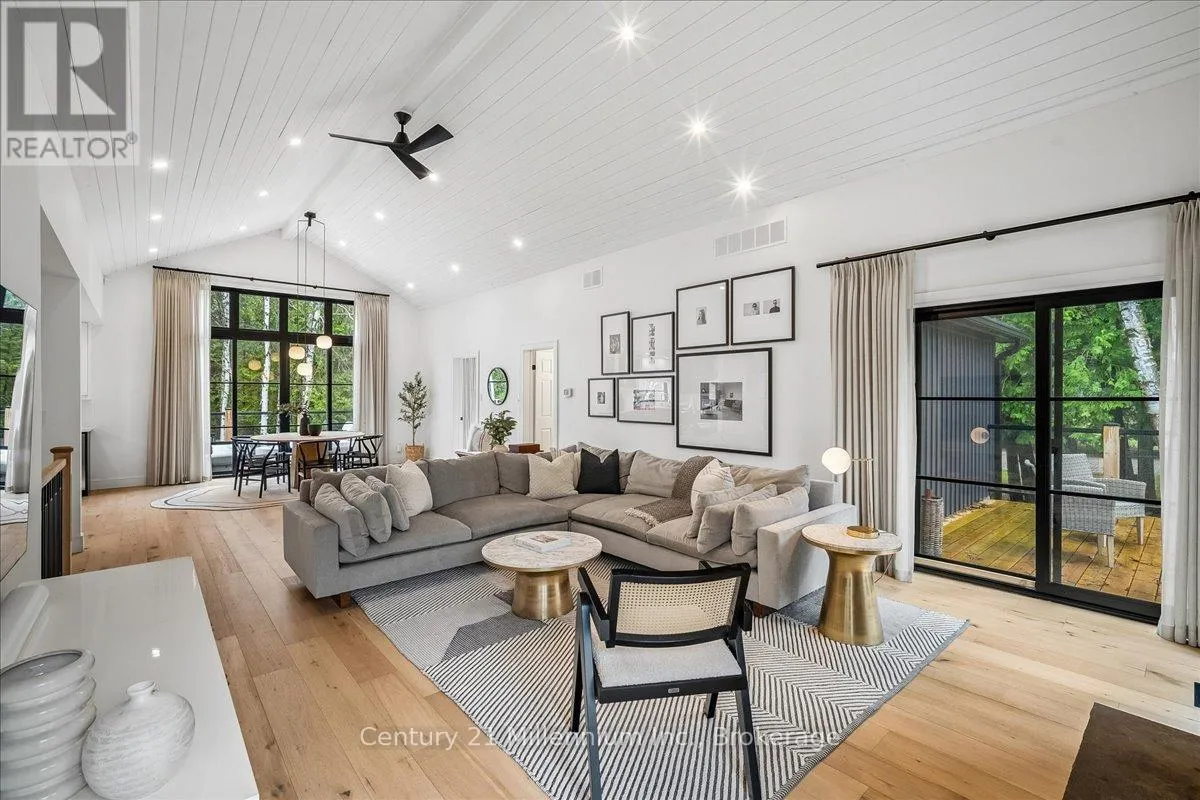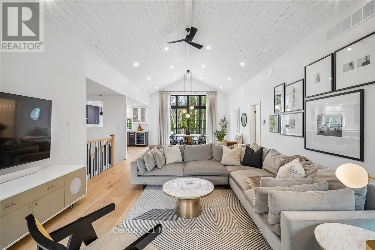 Welcome to your peaceful oasis tucked into the trees – an impeccably designed, fully renovated modern mountain chalet backing onto lush greenspace and the Silver Creek. This home offers refined living space, seamlessly blending contemporary luxury with its natural surroundings. The open-concept main level is anchored by a stunning great room with soaring vaulted ceilings, Scandinavian-inspired, wide-plank pale oak hardwood