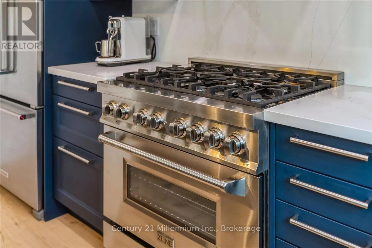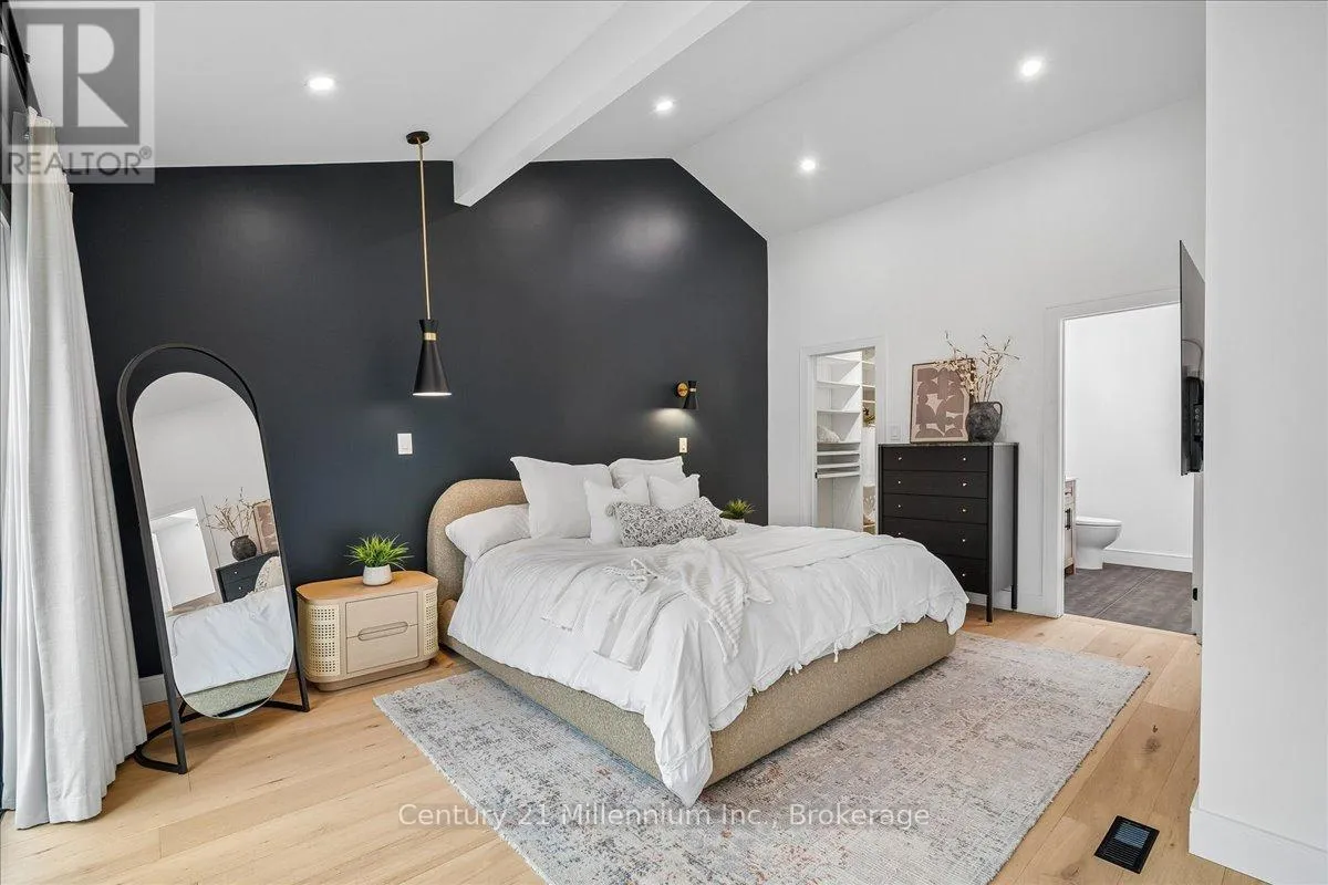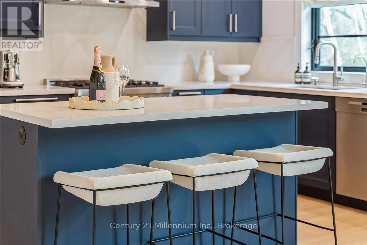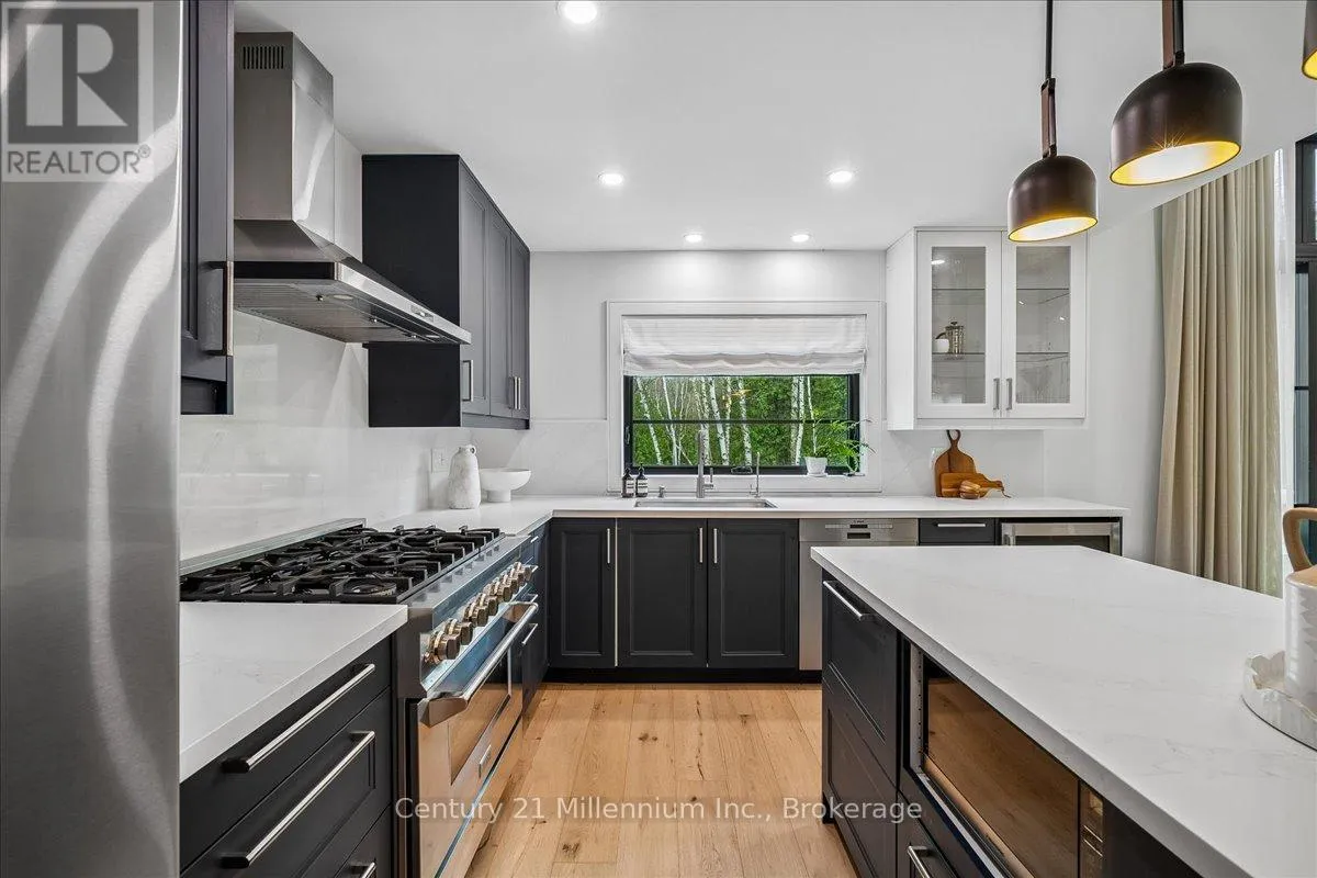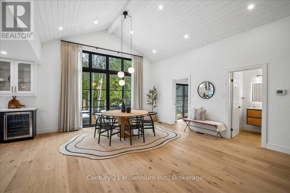 Welcome to your peaceful oasis tucked into the trees – an impeccably designed, fully renovated modern mountain chalet backing onto lush greenspace and the Silver Creek. This home offers refined living space, seamlessly blending contemporary luxury with its natural surroundings. The open-concept main level is anchored by a stunning great room with soaring vaulted ceilings, Scandinavian-inspired, wide-plank pale oak hardwood